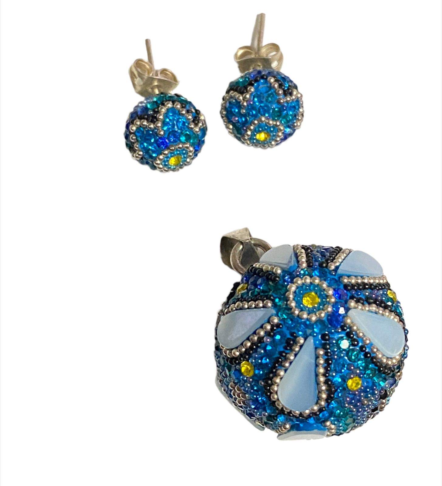 JUEGO DE ARETES Y DIJE LLAMADOR DE ANGEL DE MICROPERLA BLANCO CON TRES FLORES DE CRISTAL (NO INCLUYE CADENA)