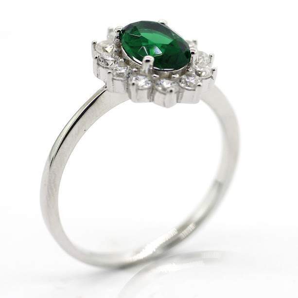 ANILLO OVALADO CIRCONIA VERDE CON CIRCONIAS BLANCAS ALREDEDOR