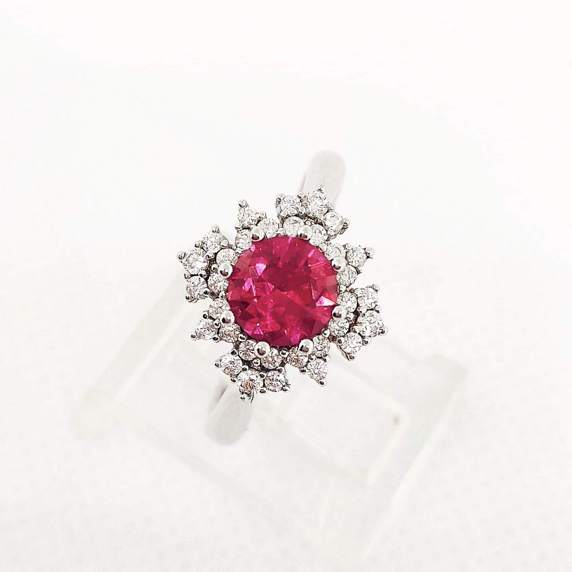 ANILLO CON CIRCONIA REDONDA AZUL Y ROJA CON CIRCONIAS BLANCAS ALREDEDOR DEL JUEGO 10290