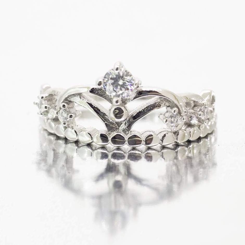 ANILLO DE CORONITA CON CIRCONIAS EN BLANCAS Y ESPIRALES EN LAS ORILLAS