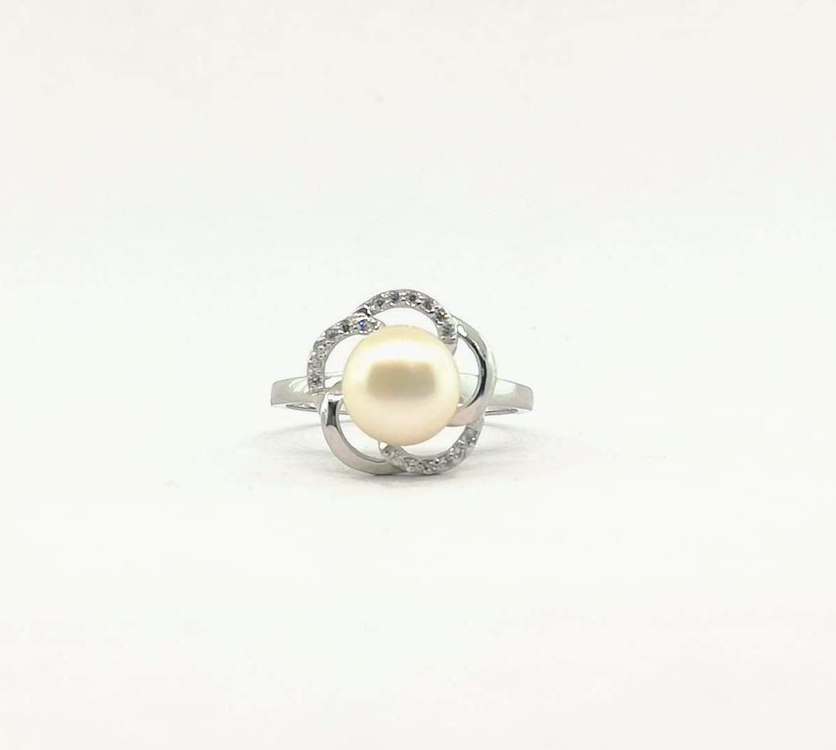 ANILLO DE PERLA CON ONDAS LISAS Y CON CIRCONIAS FORMANDO UNA FLOR