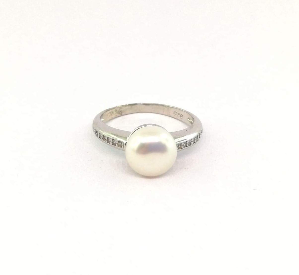 ANILLO DE PERLA DE RIO CON UNA FILA DE CIRCONIAS A LOS LADOS