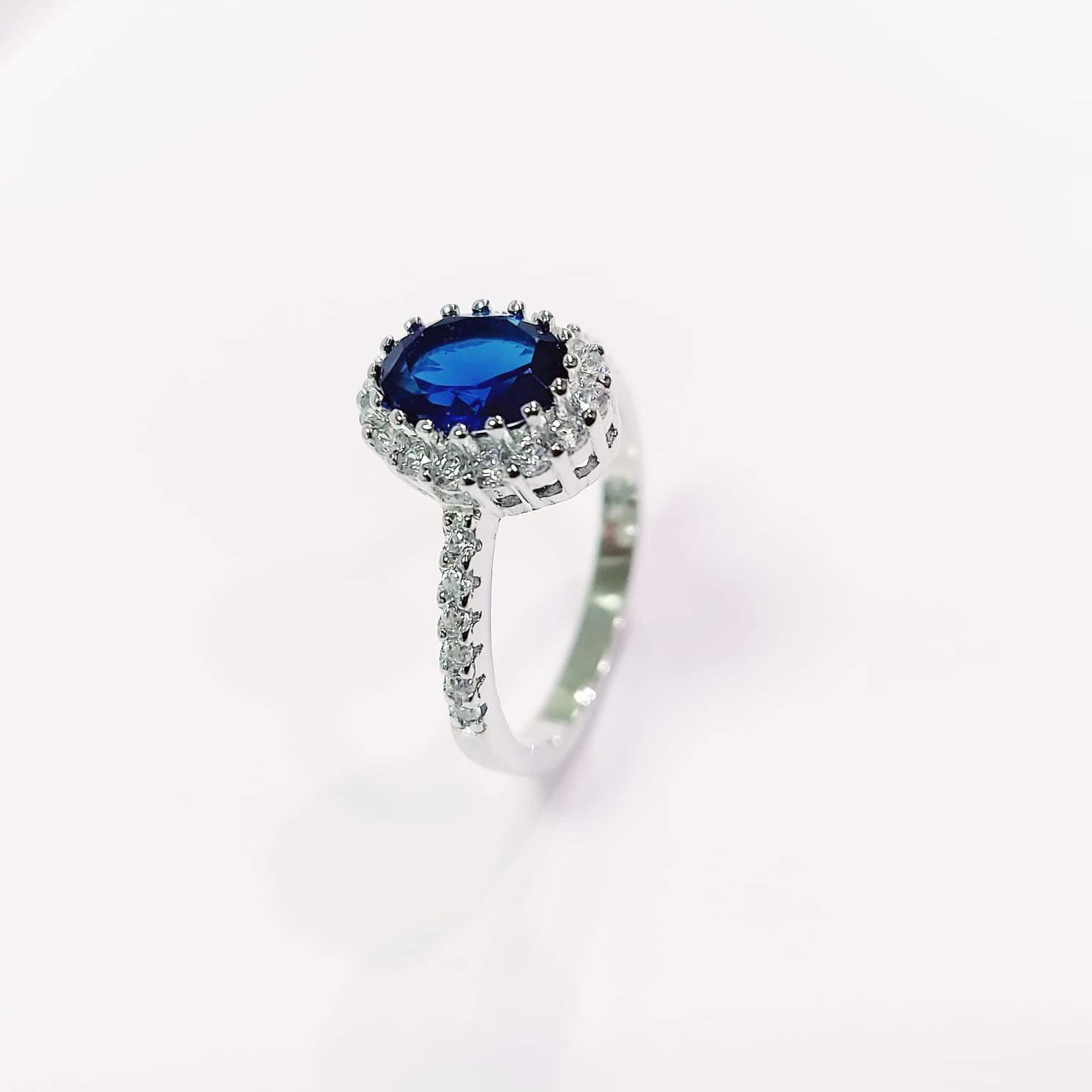 ANILLO OVALO CIRCONIA AZUL CON CIRCONIAS BLANCAS ALREDEDOR