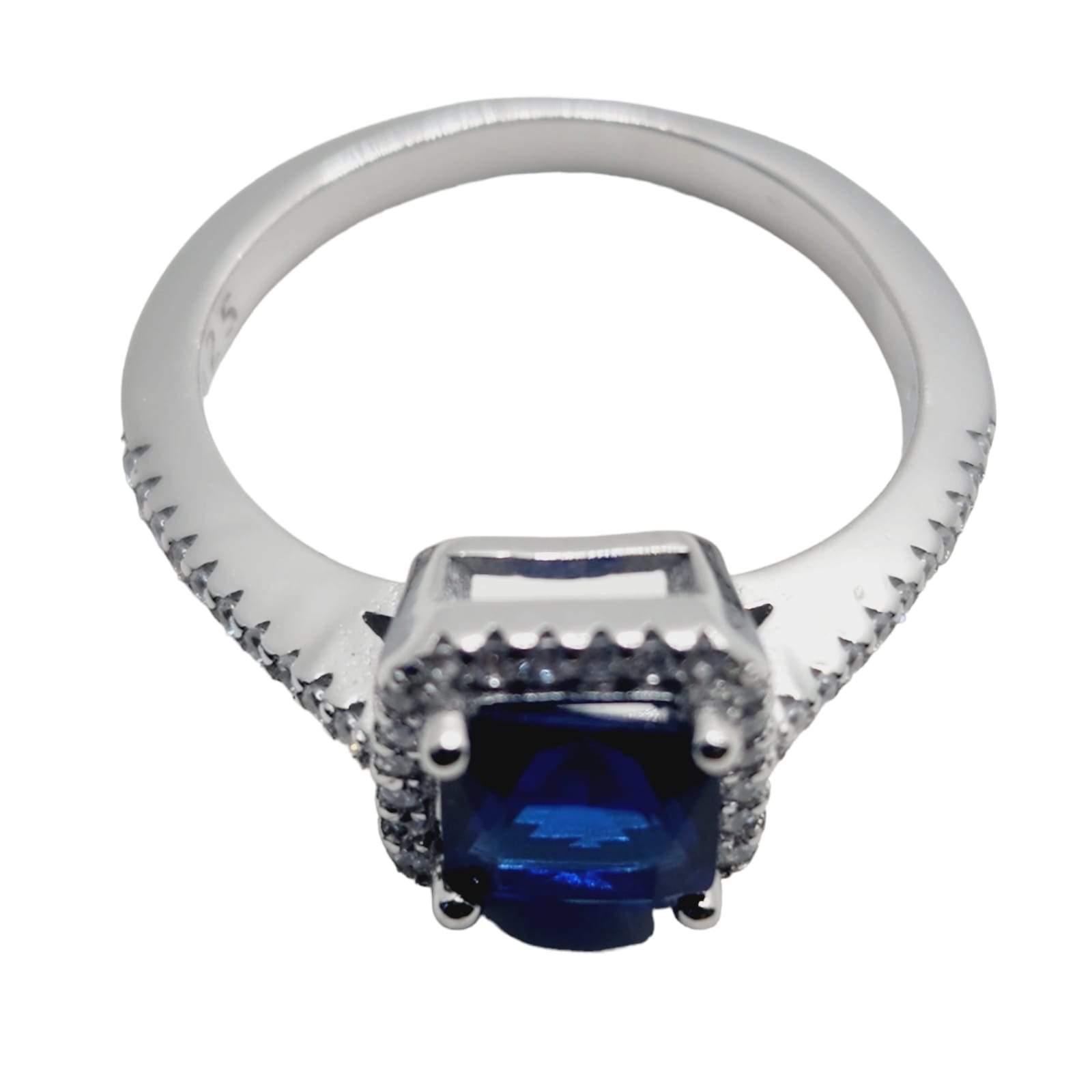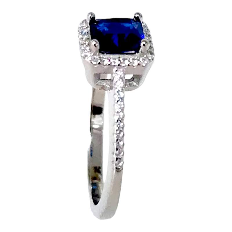 ANILLO CIRCONIA CUADRADA AZUL CON CIRCONIAS ALREDEDOR
