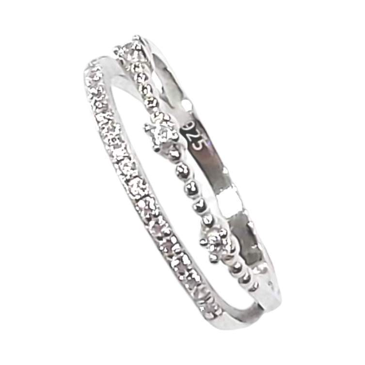 ANILLO BANDA CON 2 FILAS DE CIRCONIAS COLOR PLATA
