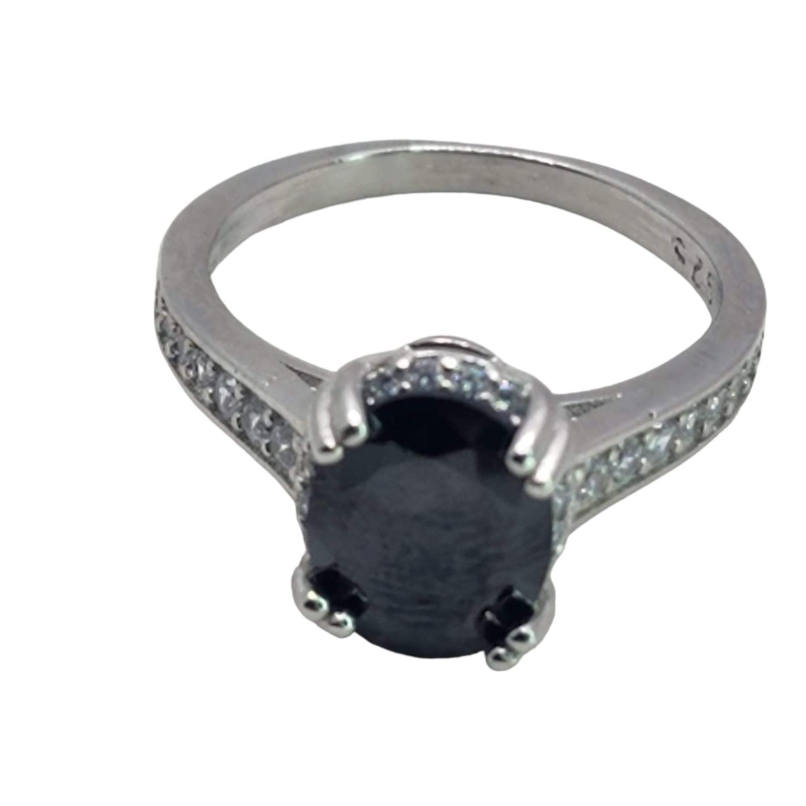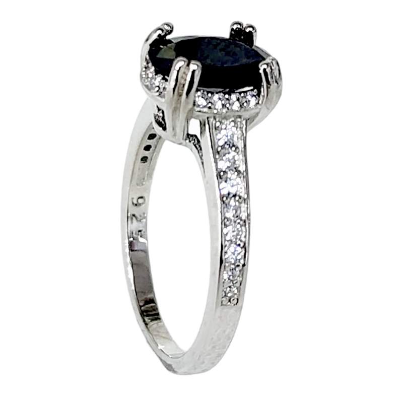 ANILLO CIRCONIA NEGRA OVALADA CON 4 PINES CIRCONIAS A LOS LADOS