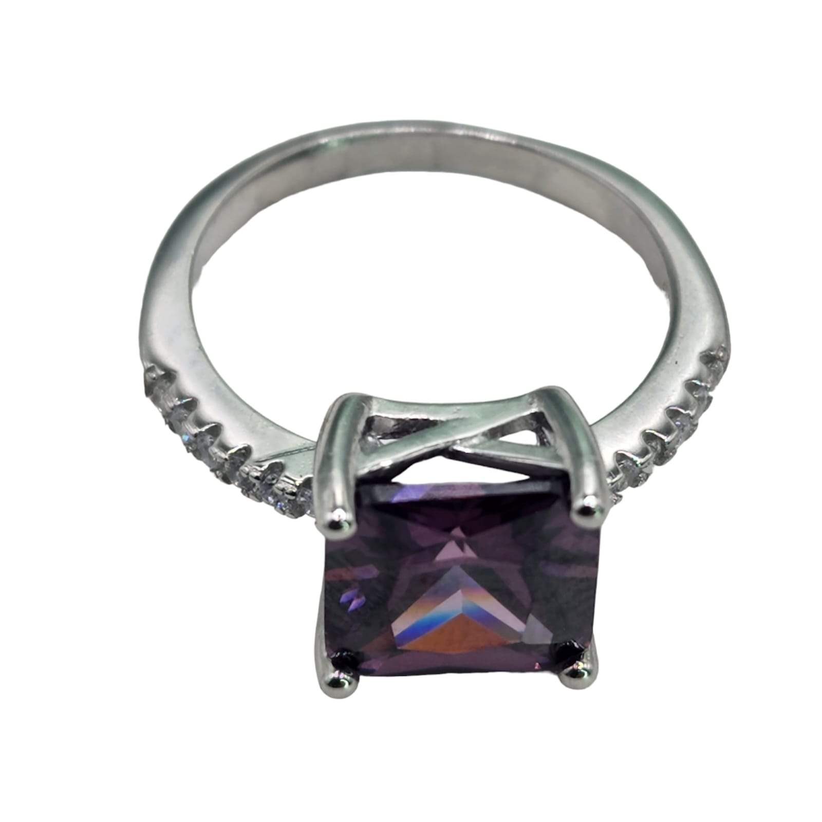 ANILLO CIRCONIA MORADA CUADRADA CON CIRCONIAS BLANCAS A LOS LADOS