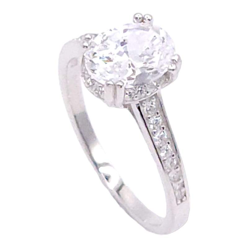 ANILLO CON CIRCONIA OVALADA CON DOBLE PIN CIRCONIAS A LOS LADOS