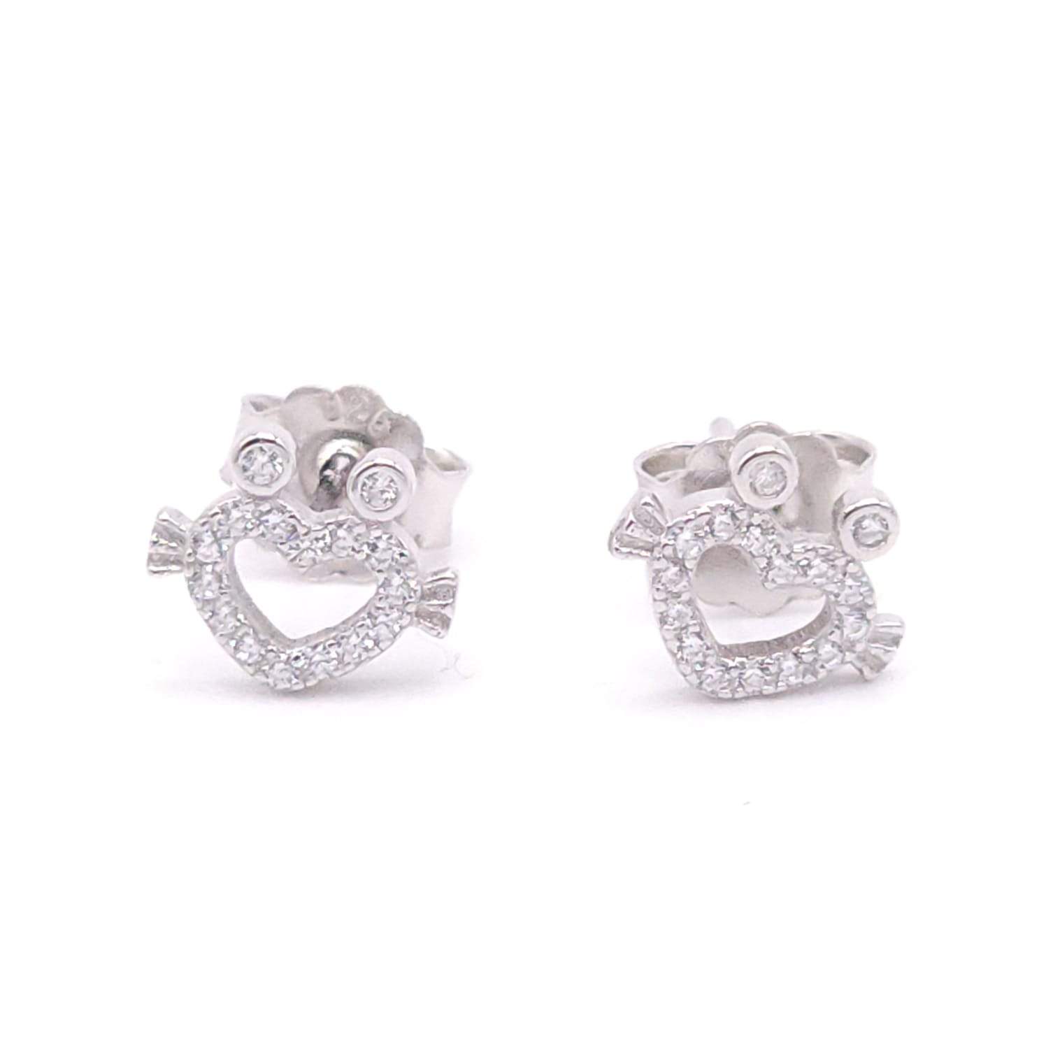 ARETES EN FORMA DE CORAZON CON 2 CIRCONIAS BICELADAS DE POSTE Y DOS CIRCONIAS DE CADA EXTREMO
