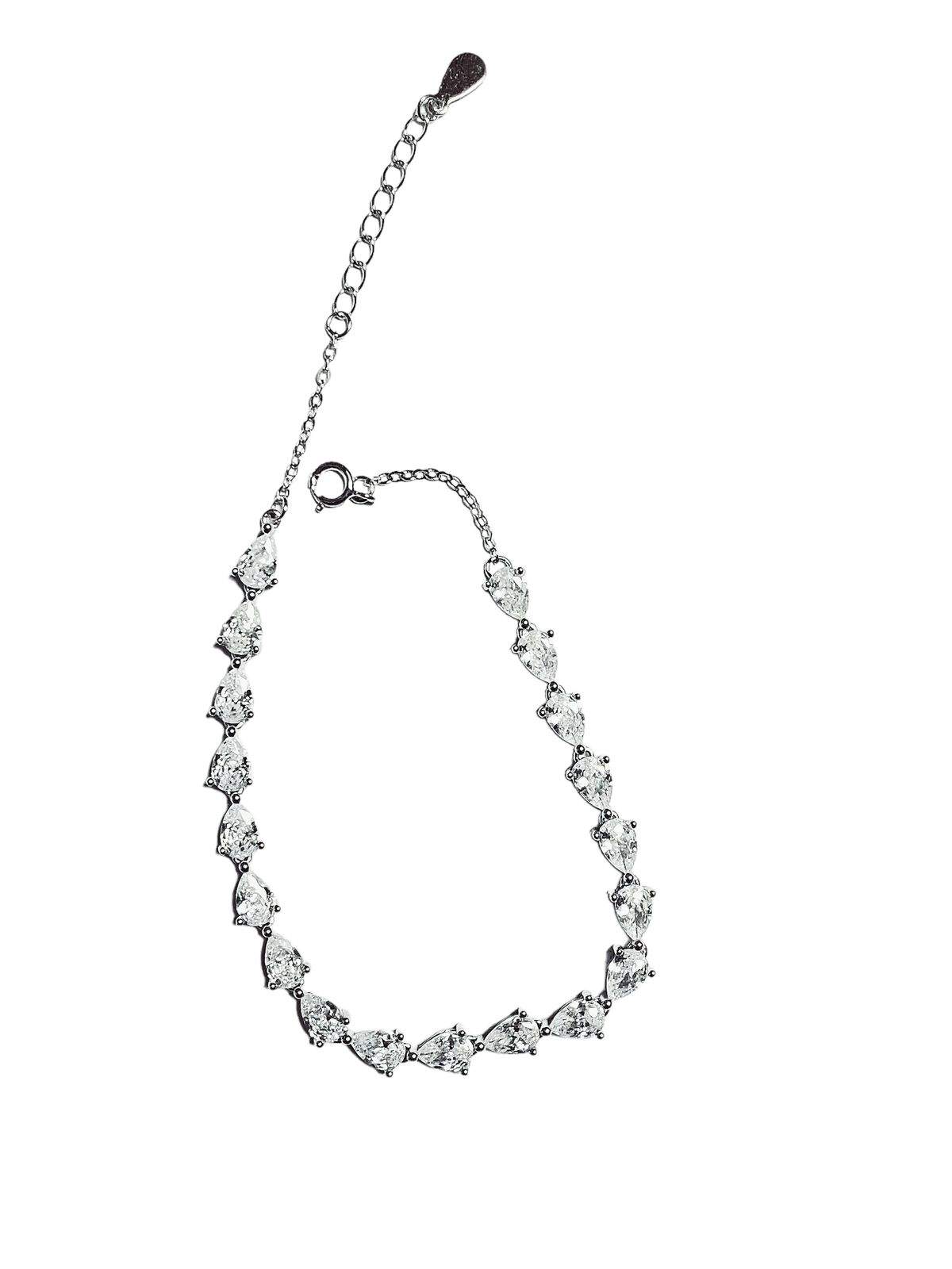 BRAZALETE ELEGANTE DE 19 CIRCONIAS EN FORMA CUBICA BLANCA ESTILO TENIS CON 3 PINES EN CADA CIRCONIA