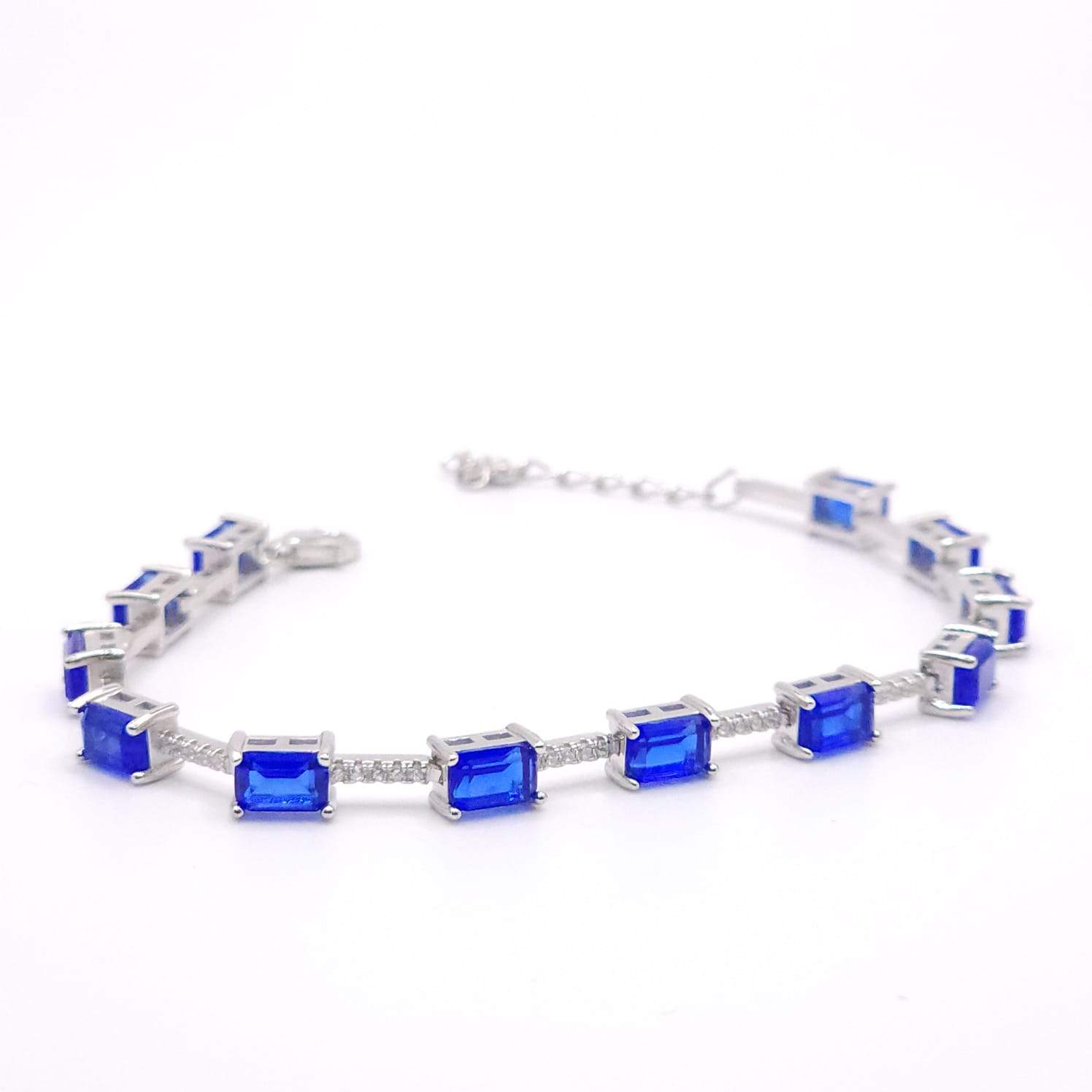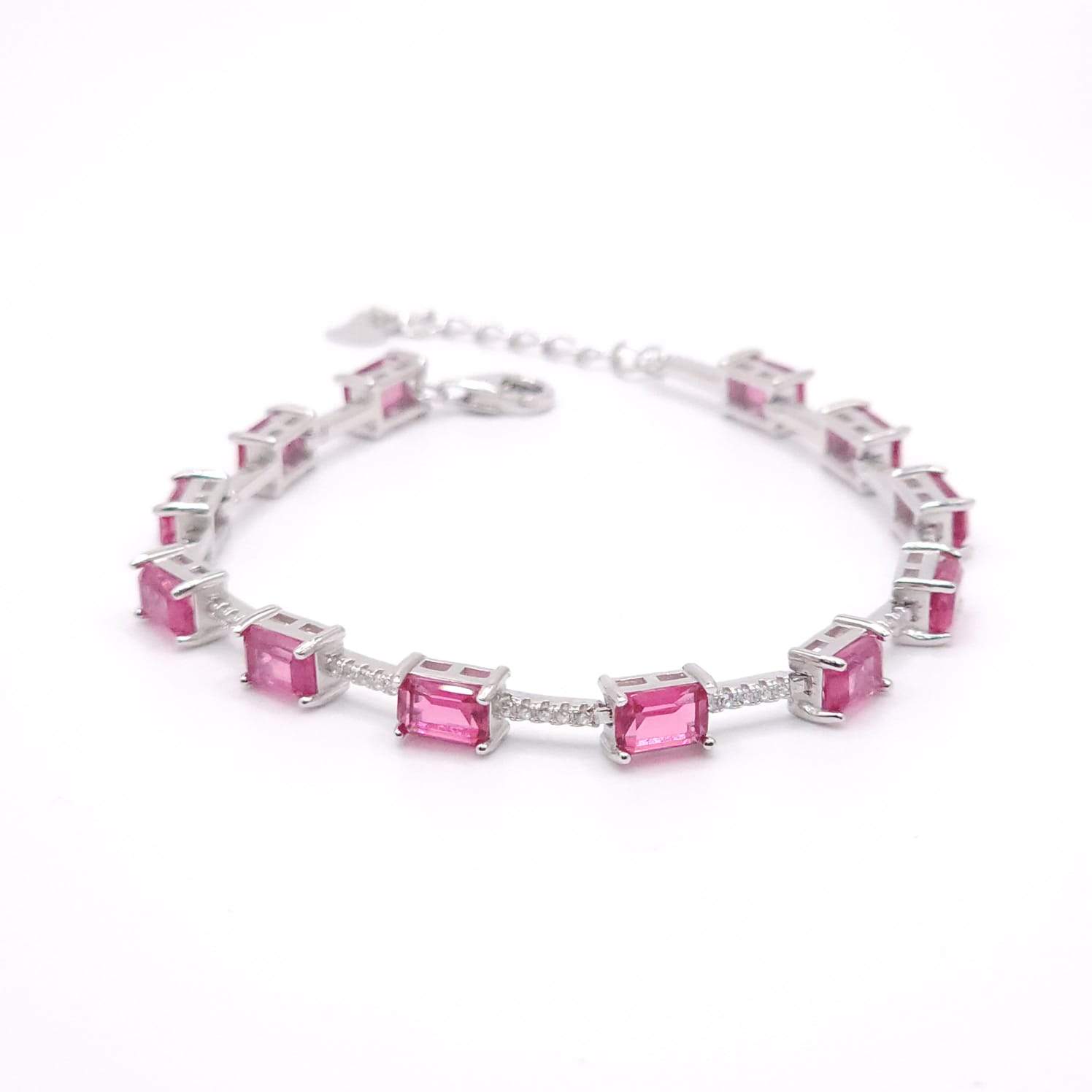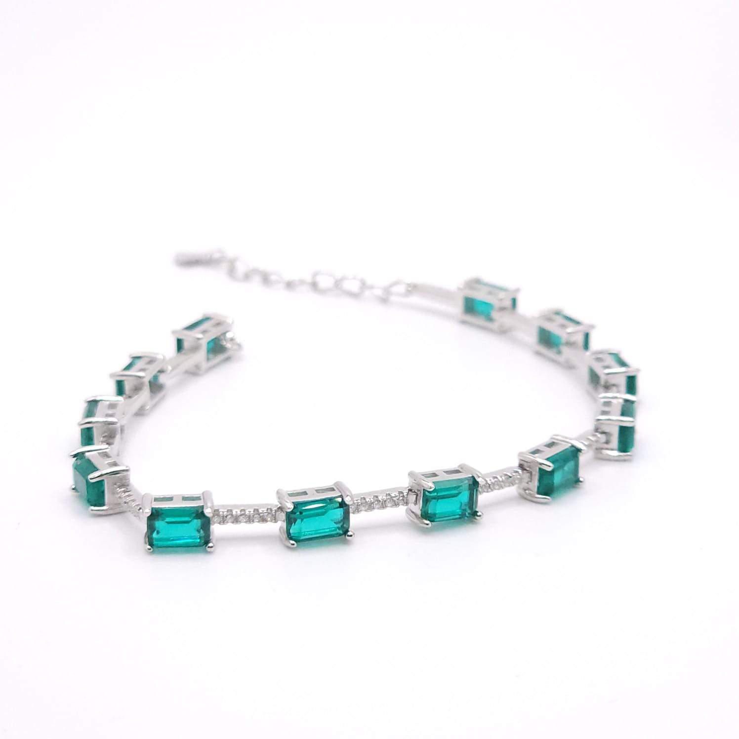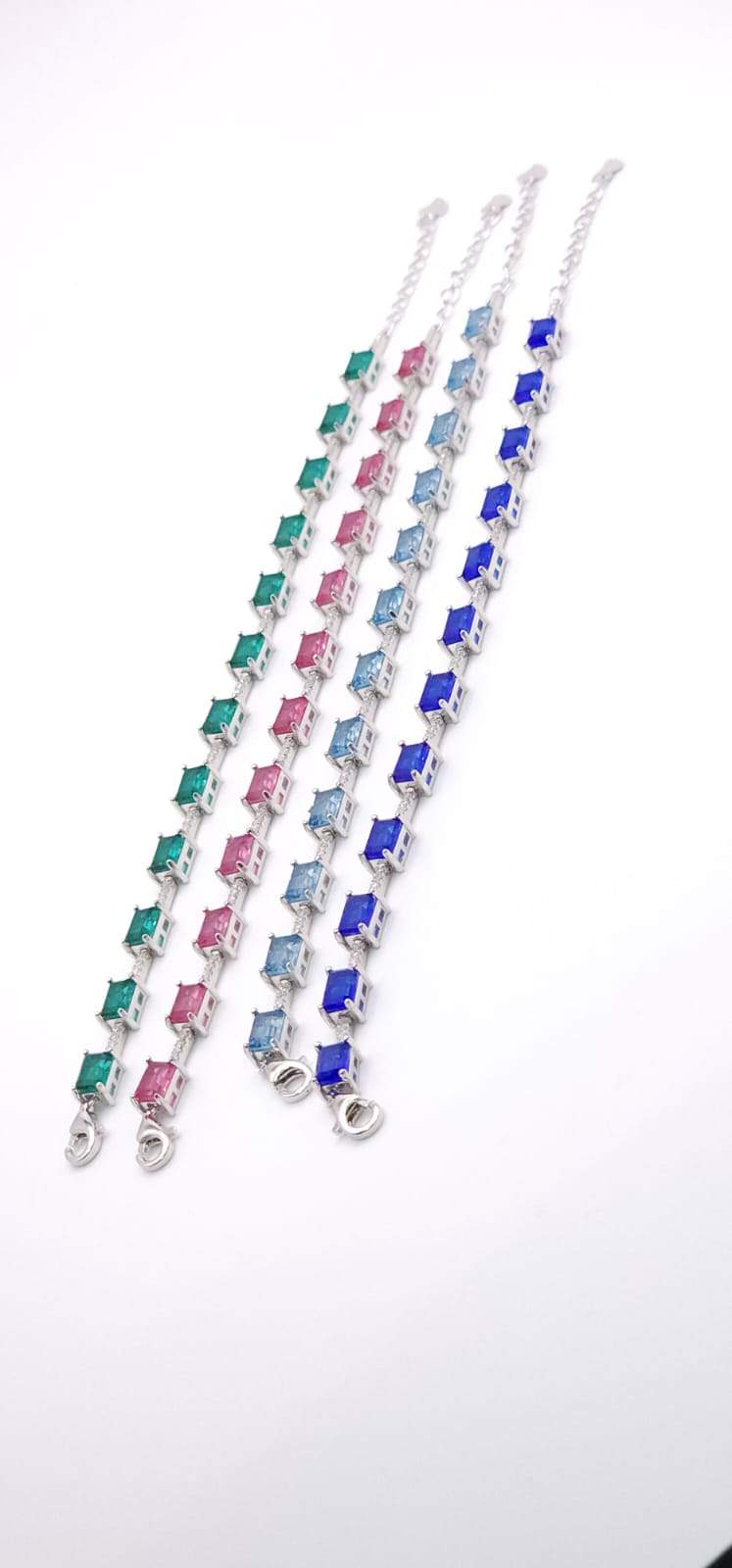 PULSERA CON 12 CIRCONIAS RECTANGULARES INTERCALADAS POR UNA LINEA DE 4 CIRCONIAS BLANCAS (FUCSIA, VERDE, AZUL, CELESTE)
