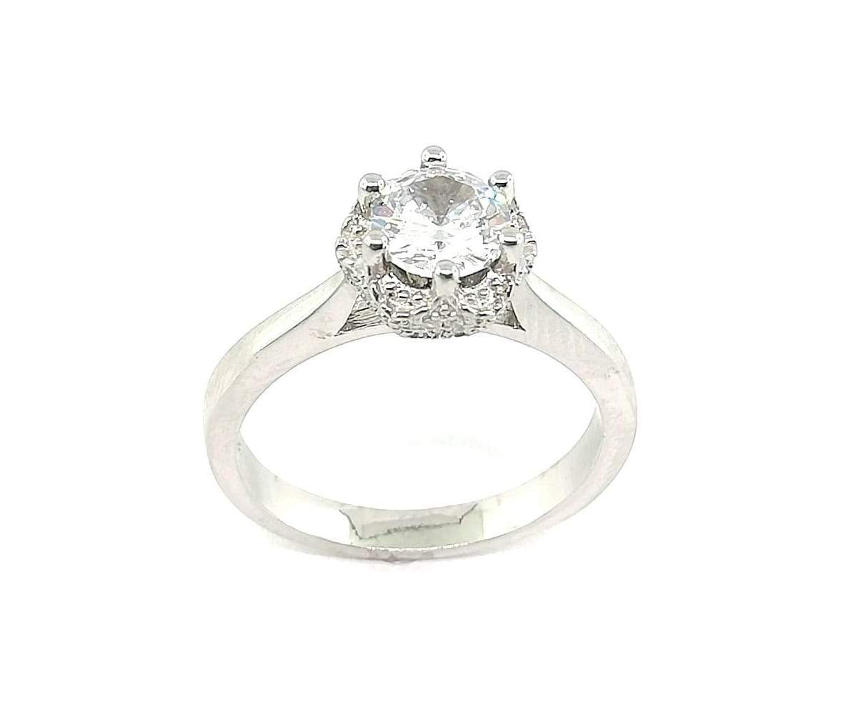 ANILLO CIRCONIA BLANCA RODEADA DE CIRCONIAS BLANCAS Y LADOS LISOS