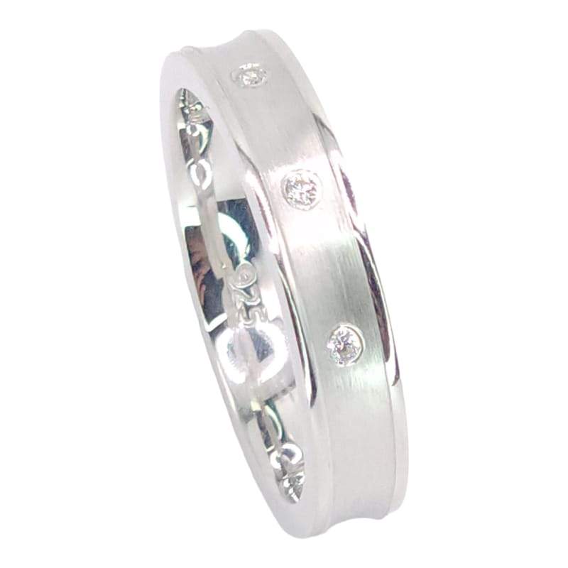 ARGOLLA MATIZADA DE DAMA CON LINEA LISA BRILLANTE EN CADA BORDE Y 3 CIRCONIAS FRONTALES