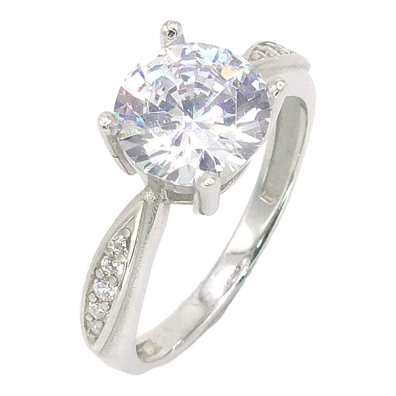 ANILLO CIRCONIA REDONDA DE 4 PINES CON 5 CIRCONIAS DE CADA LADO
