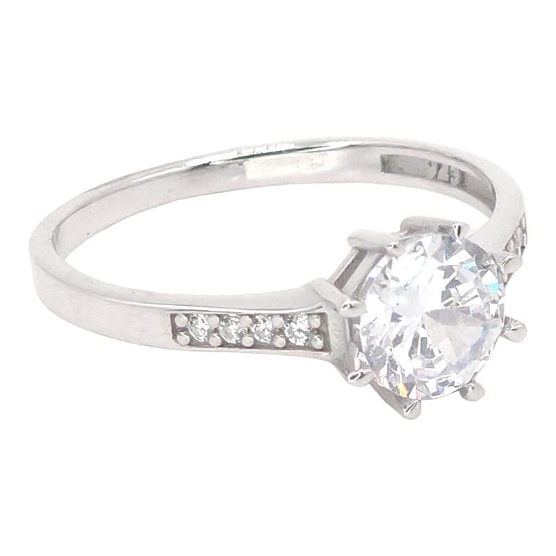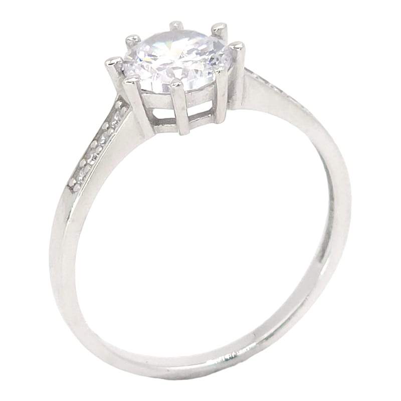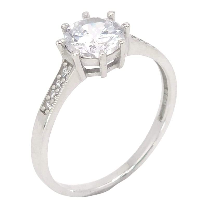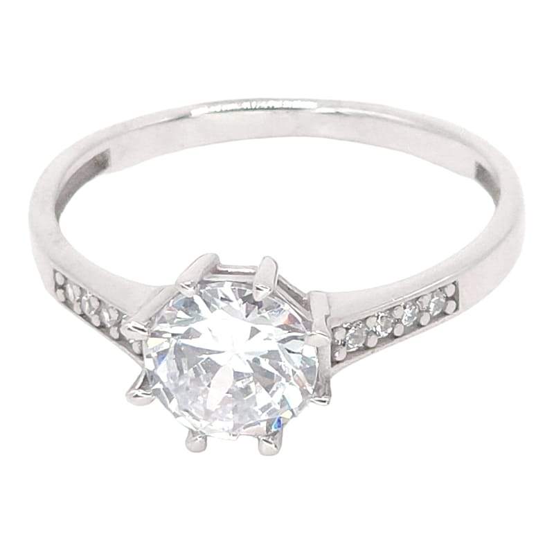 ANILLO LISO CON CIRCONIA REDONDA BLANCA 8 PINES LISOS Y 4 CIRCONIAS DE CADA LADO