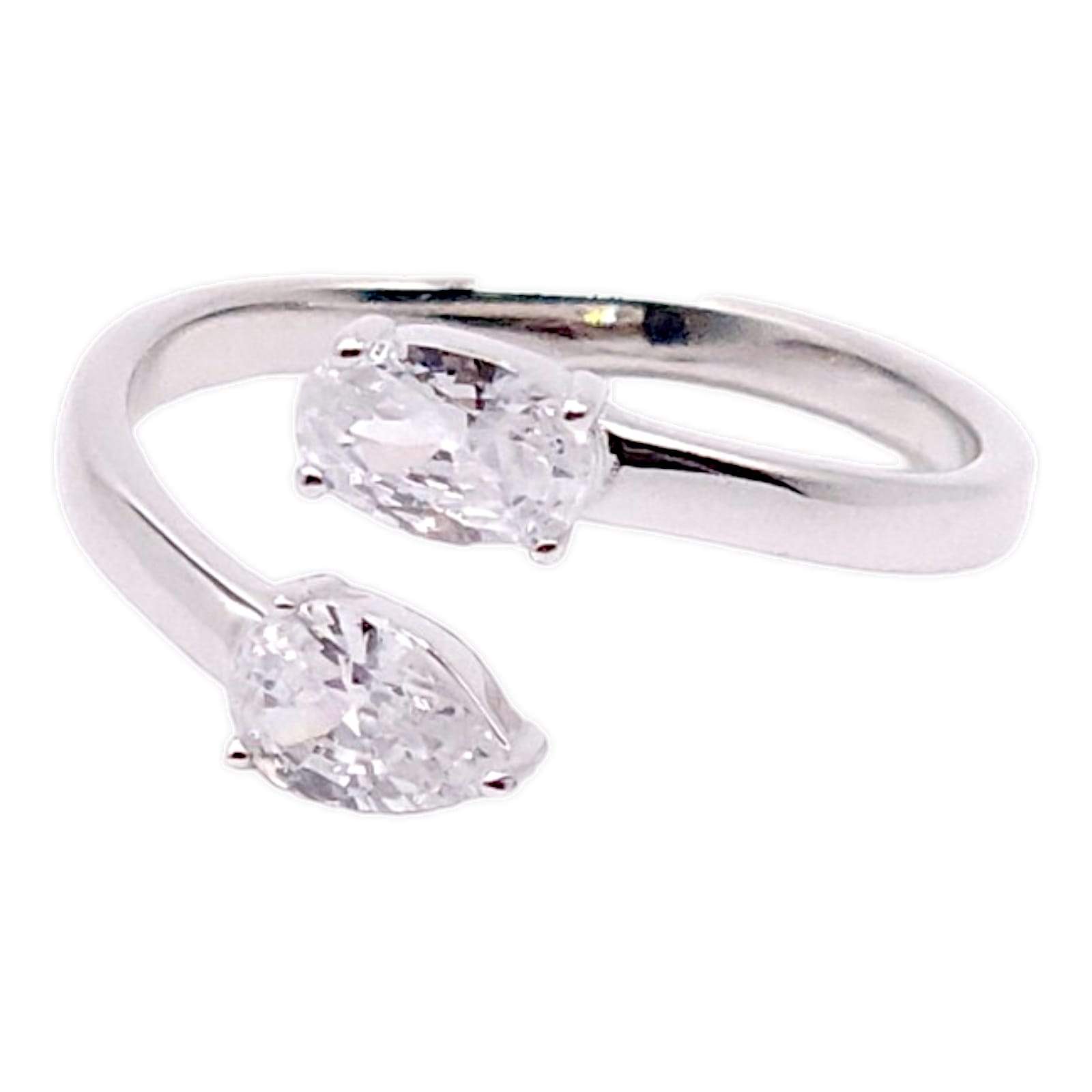 ANILLO AJUSTABLE CON DOS CIRCONIAS EN FORMA DE GOTA ENCONTRADAS