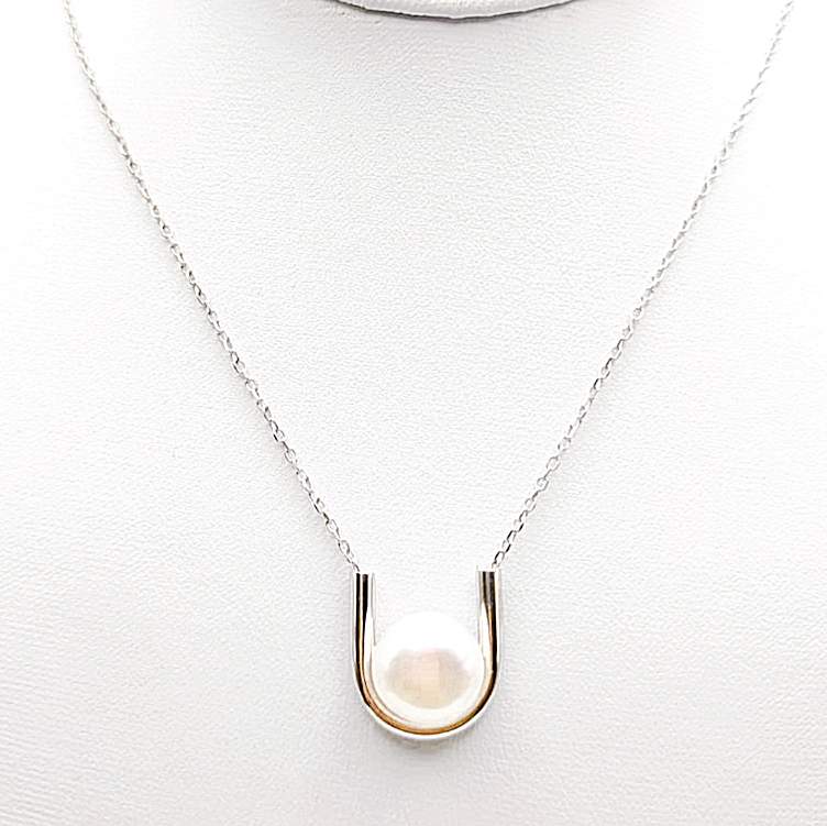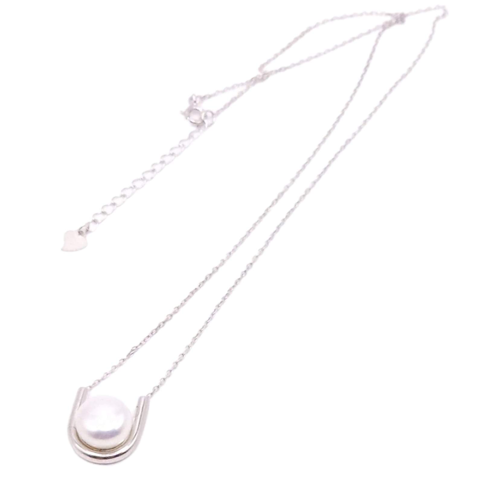 GARGANTILLA CON PERLA REDONDA EN UNA U DE PLATA LISA