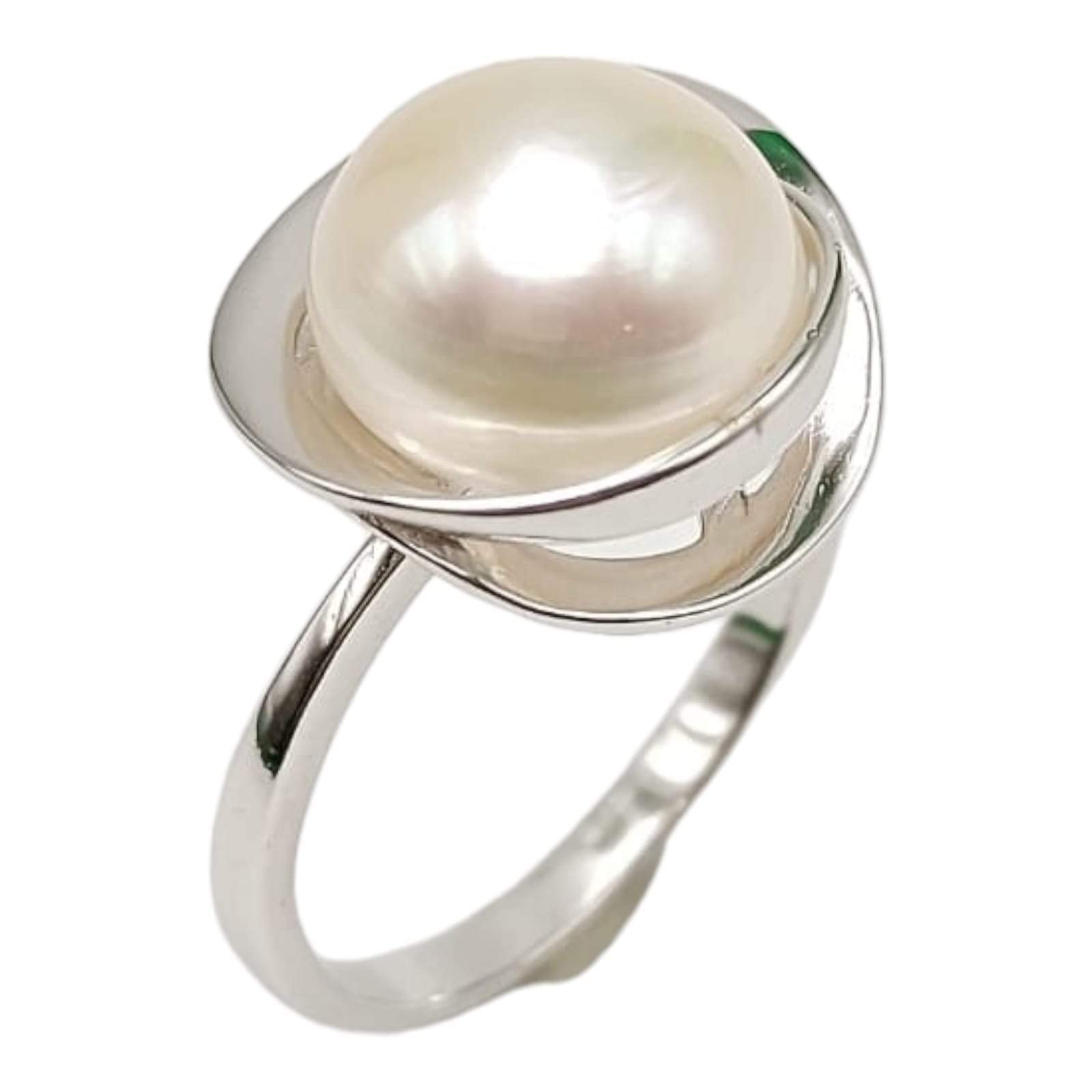 ANILLO PERLA DE RIO 10 MM SOBRE BASE DE 3 ONDAS LISAS