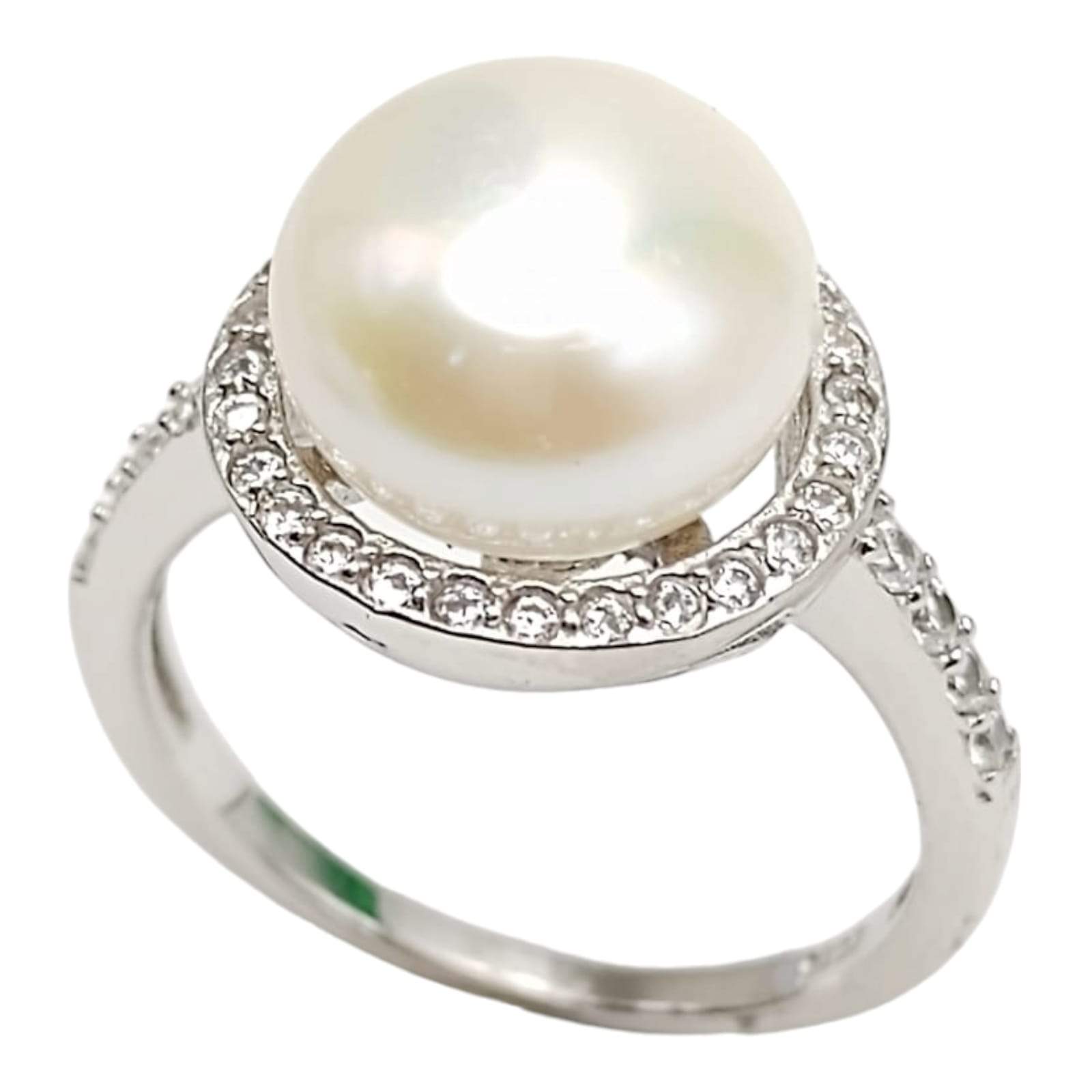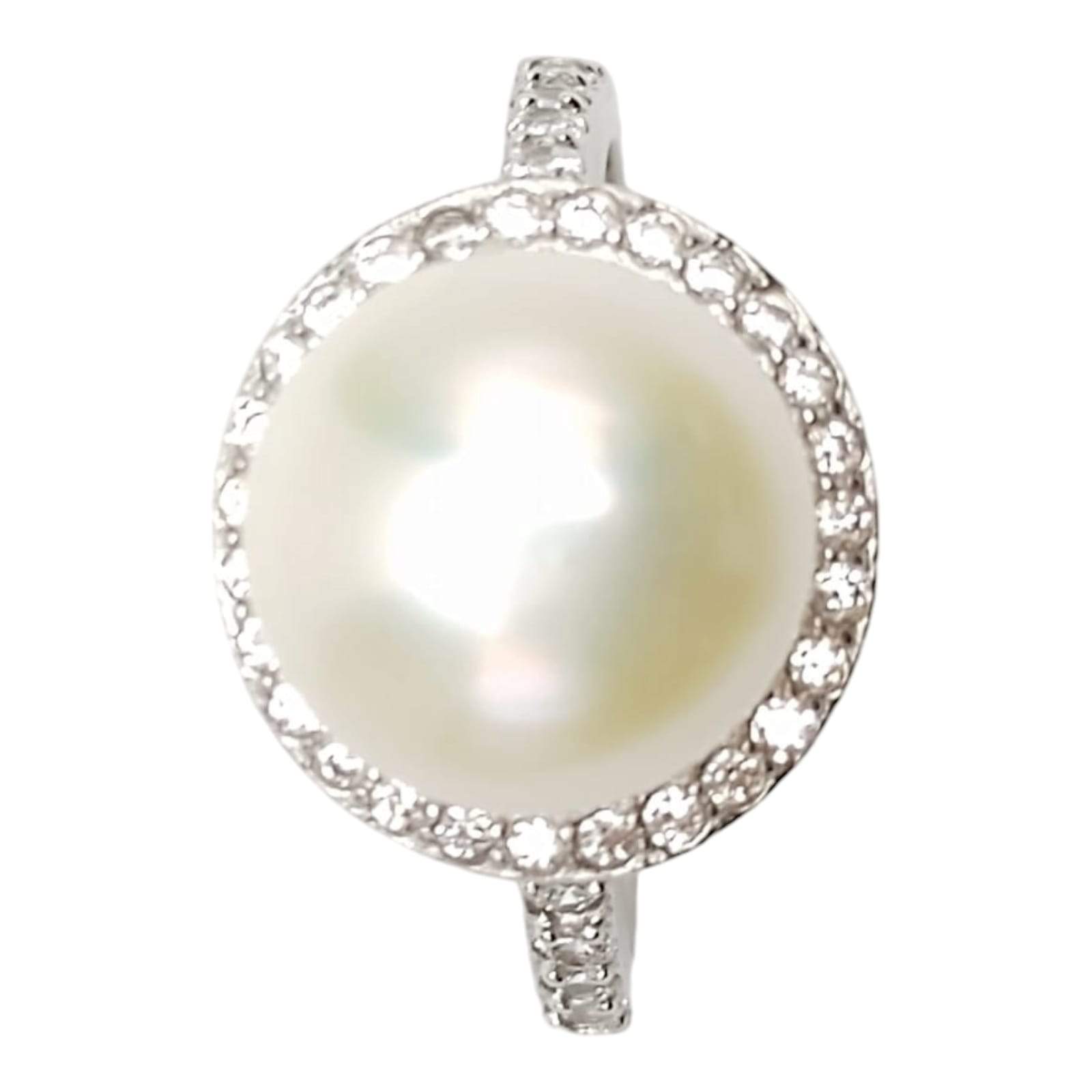ANILLO PERLA DE RIO 10MM CON BASE DE CIRCULO DE CIRCONIAS BLANCAS TALLAS 6 Y 6.5