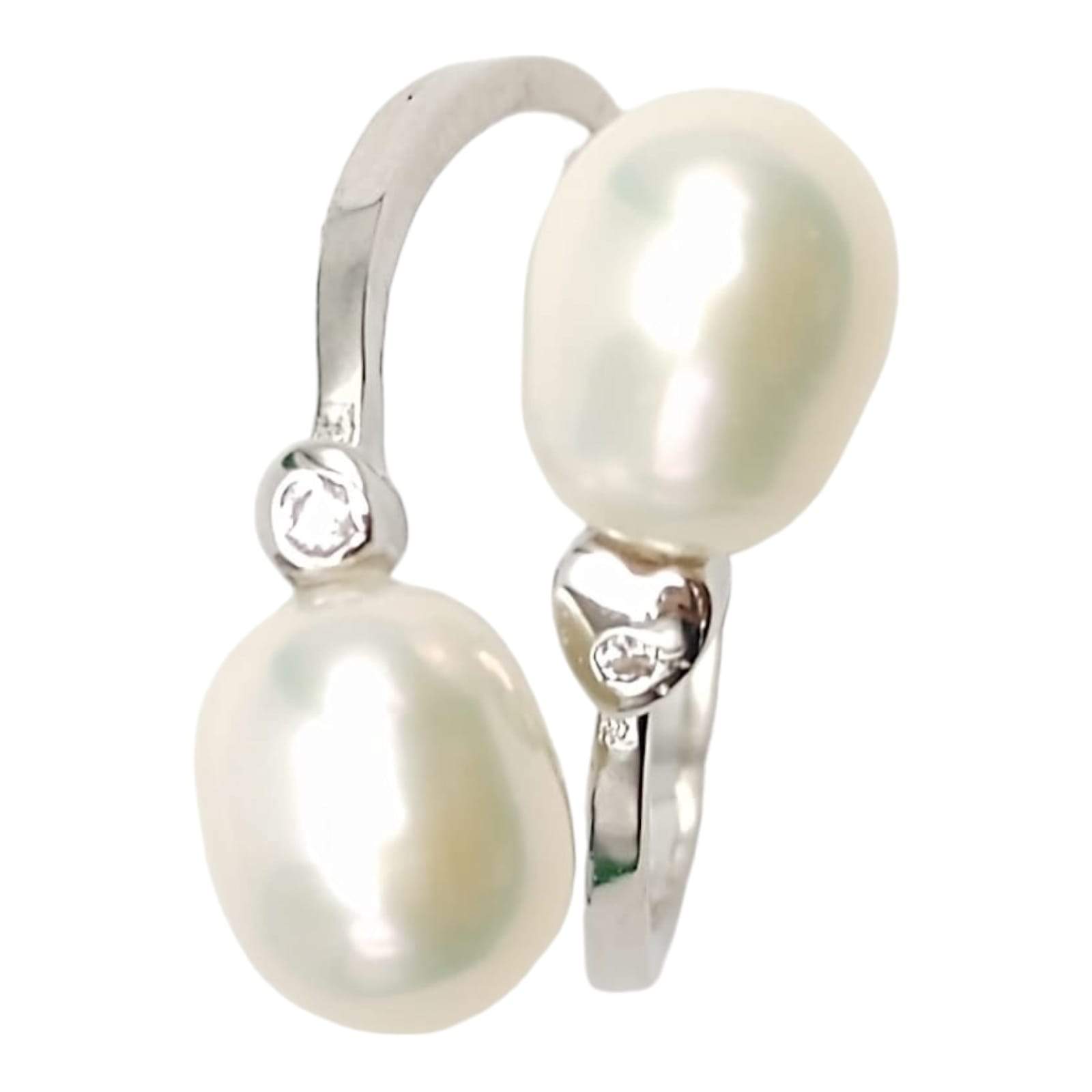 ANILLO AJUSTABLE DOS PERLAS DE RIO FORMA DE GOTA CON 1 CIRCONIA DE CADA LADO