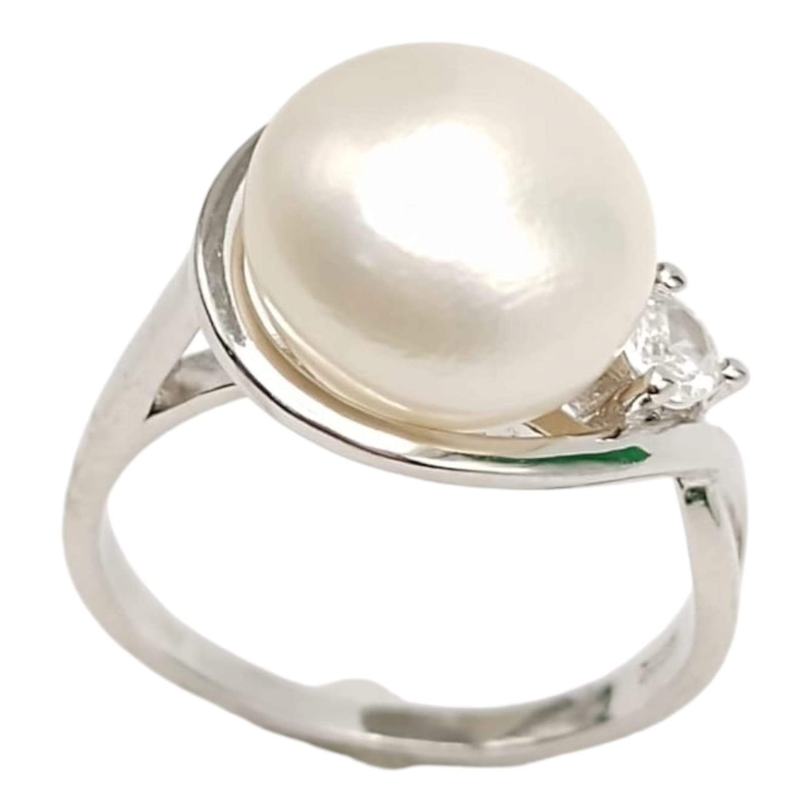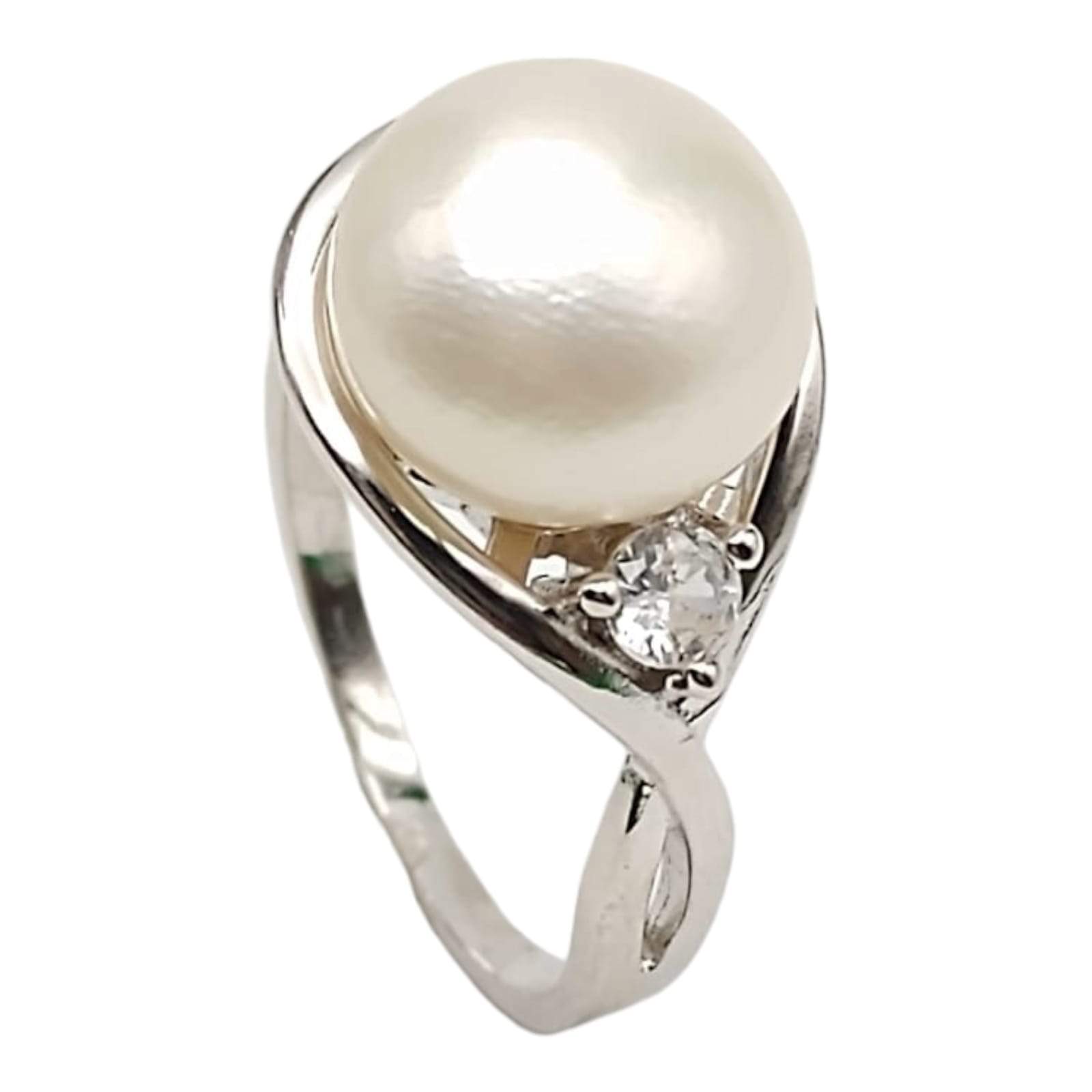 ANILLO PERLA DE RIO 10MM SOBRE CIRCULO LISO CON UNA CIRCONIA