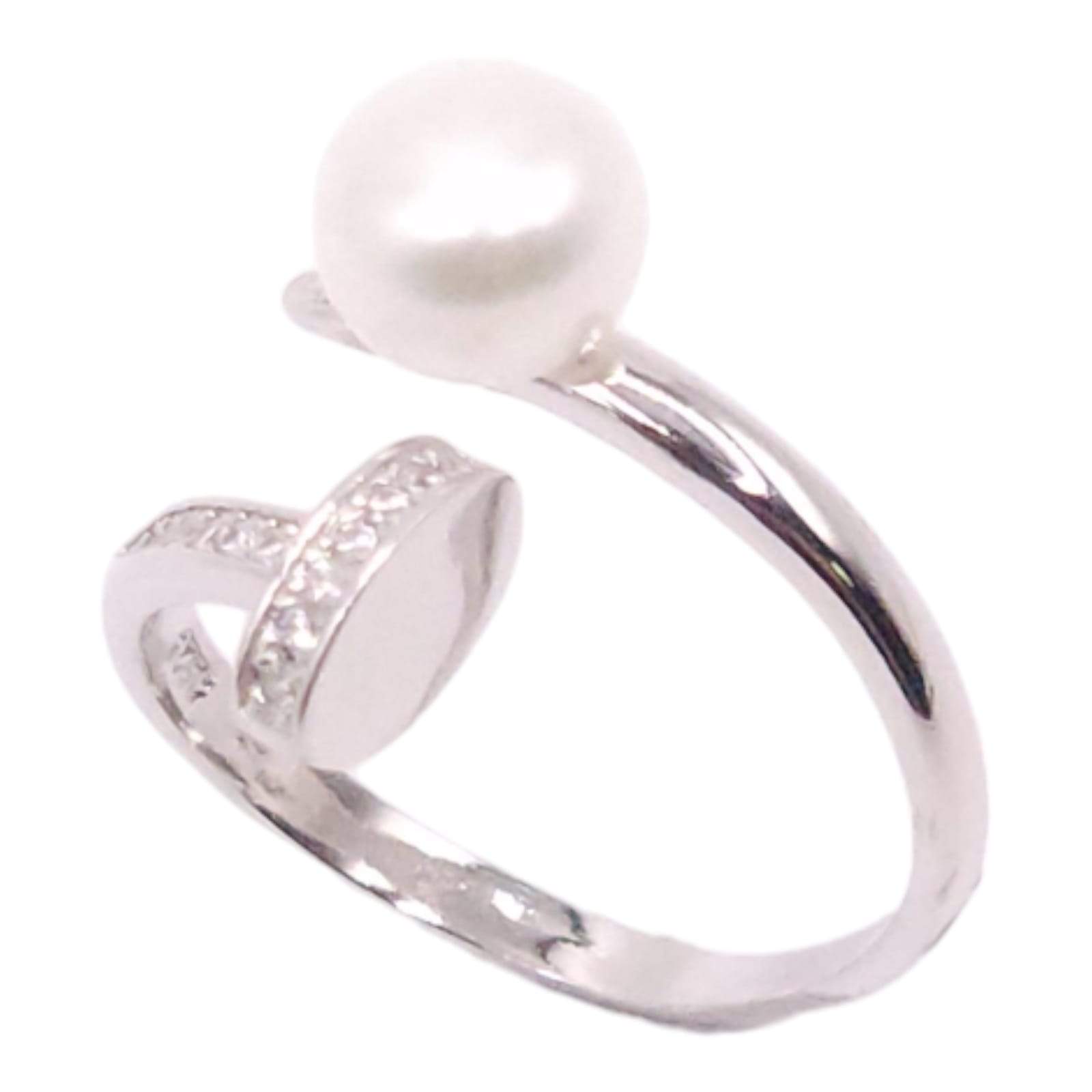 ANILLO AJUSTABLE FORMA DE CLAVO PERLA DE RIO 8MM CON CIRCONIAS BLANCAS