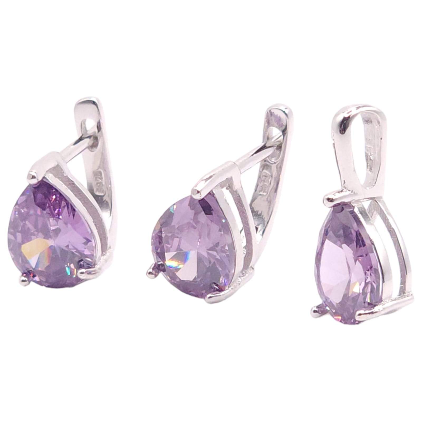 JUEGO DIJE Y ARETES GOTA CIRCONIA LILA ARETES CON GANCHO INGLES