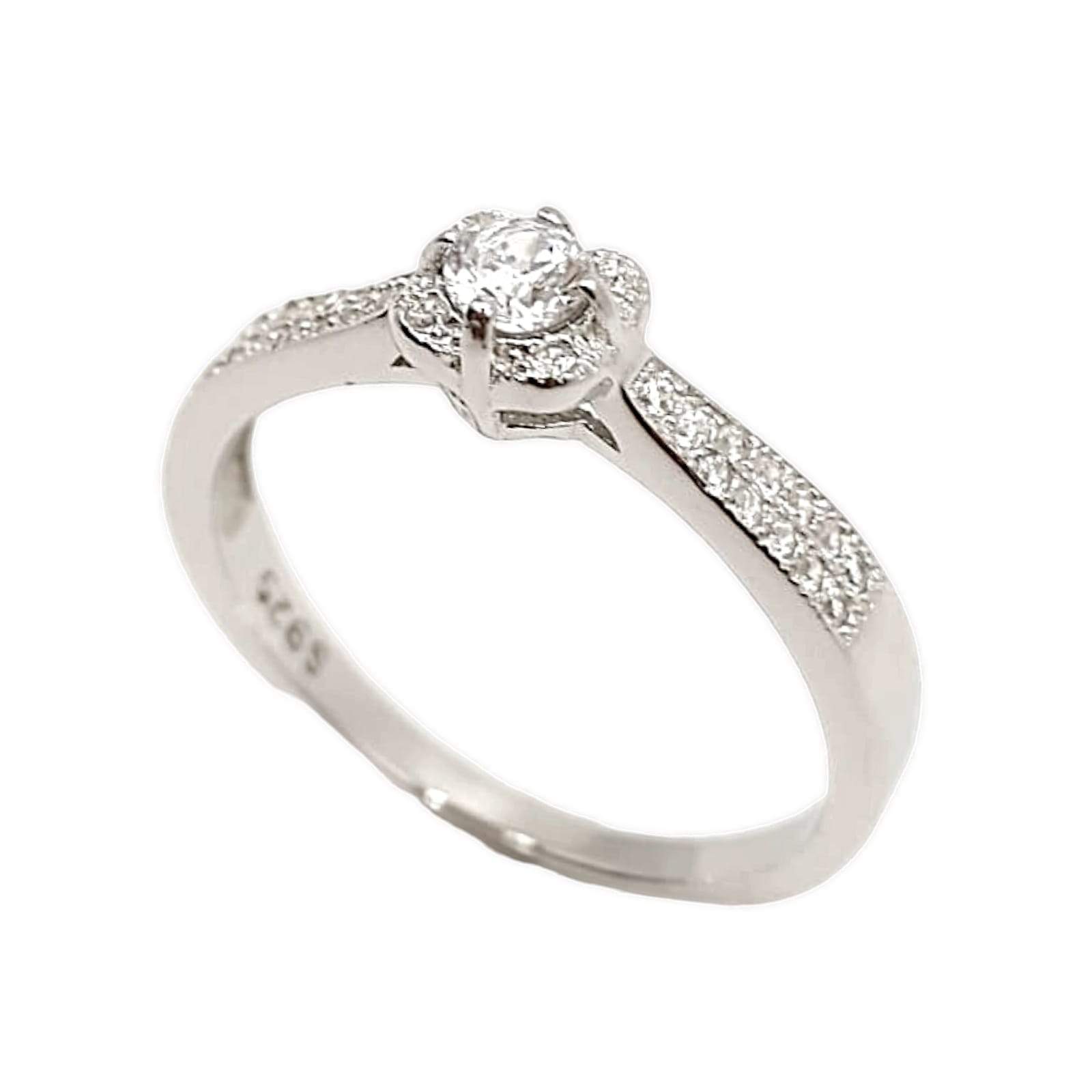 ANILLO CIRCONIA BLANCA CON MONTURA CUADRADA CIRCONIAS EN CADA ESQUINA Y A LOS LADOS