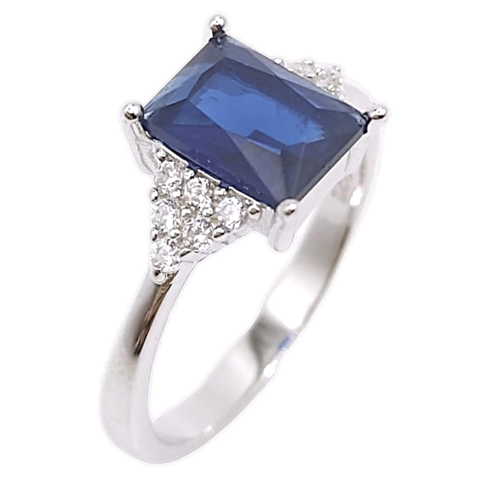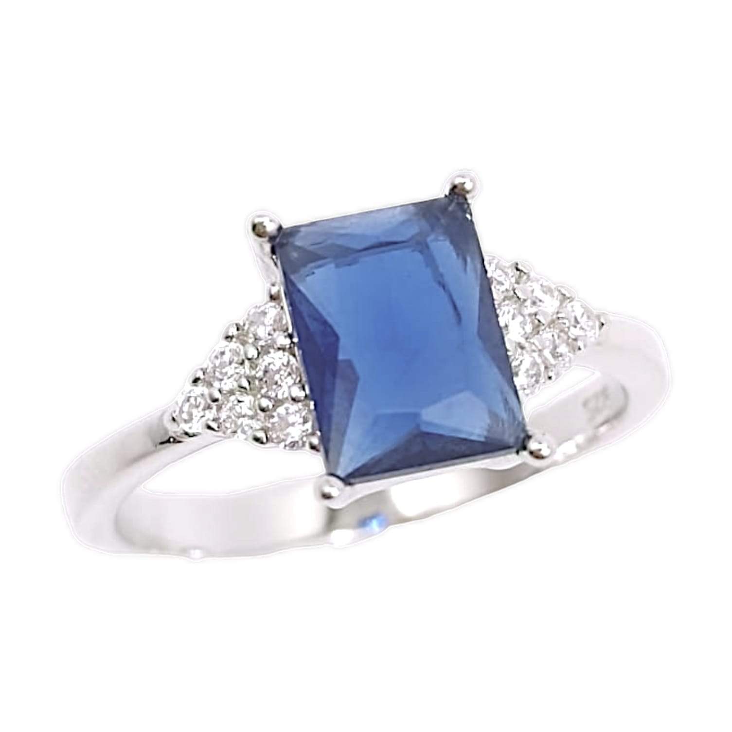 ANILLO CIRCONIA AZUL RECTANGULAR CON UN TRIANGULO DE CIRCONIAS A