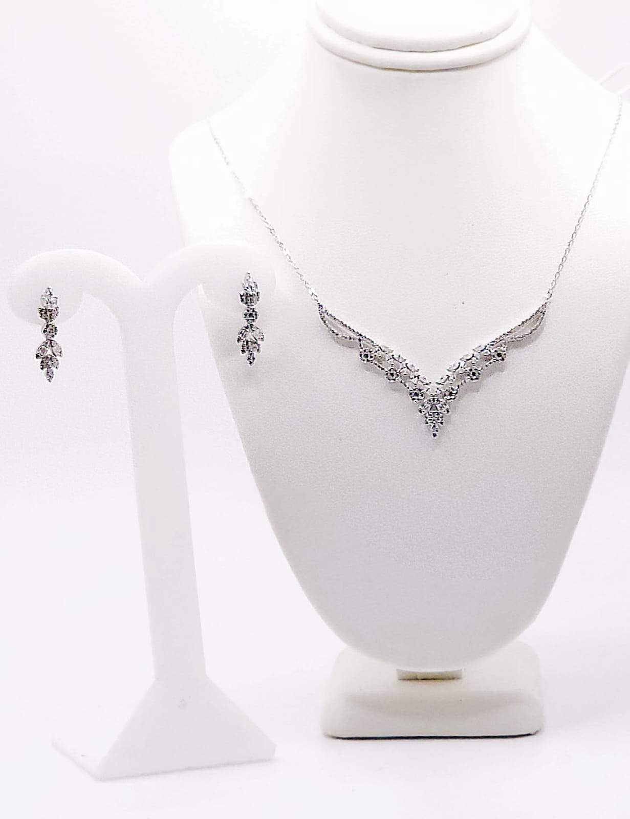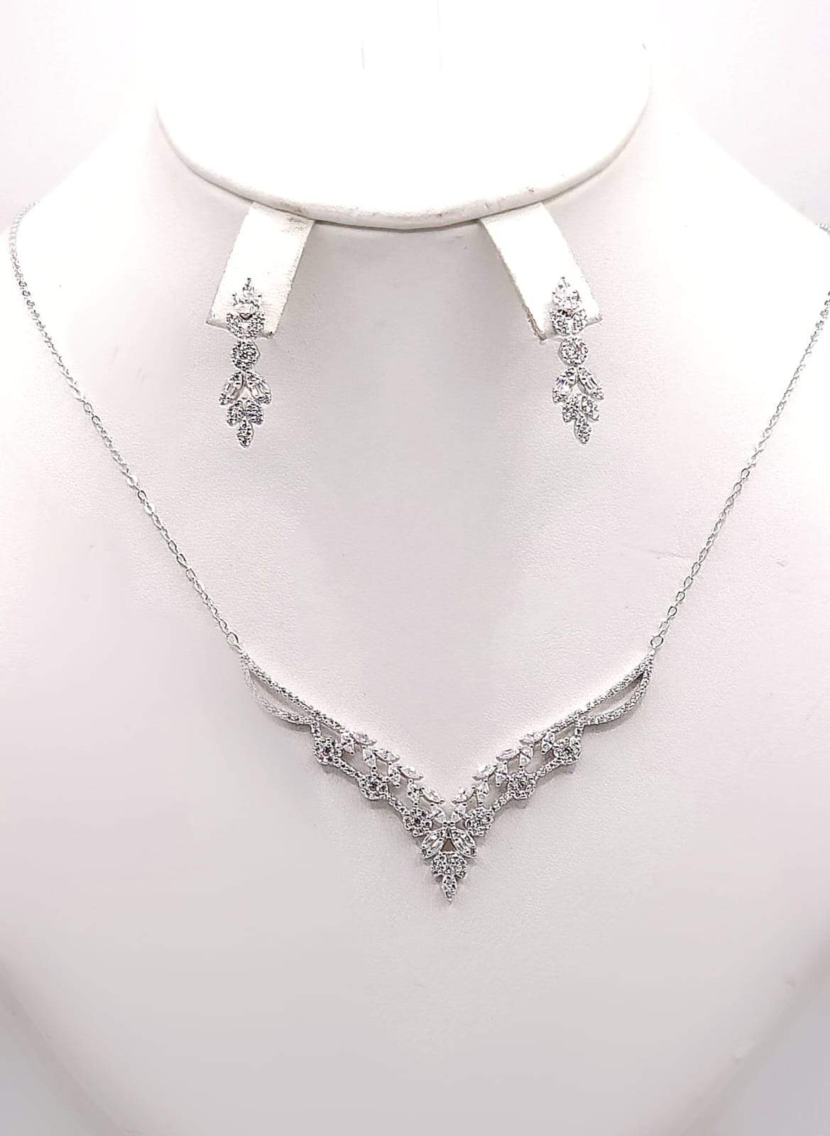 GARGANTILLA Y ARETES CON 3 FLORES DE CIRCONIA DE CADA LADO Y 5 HOJITAS