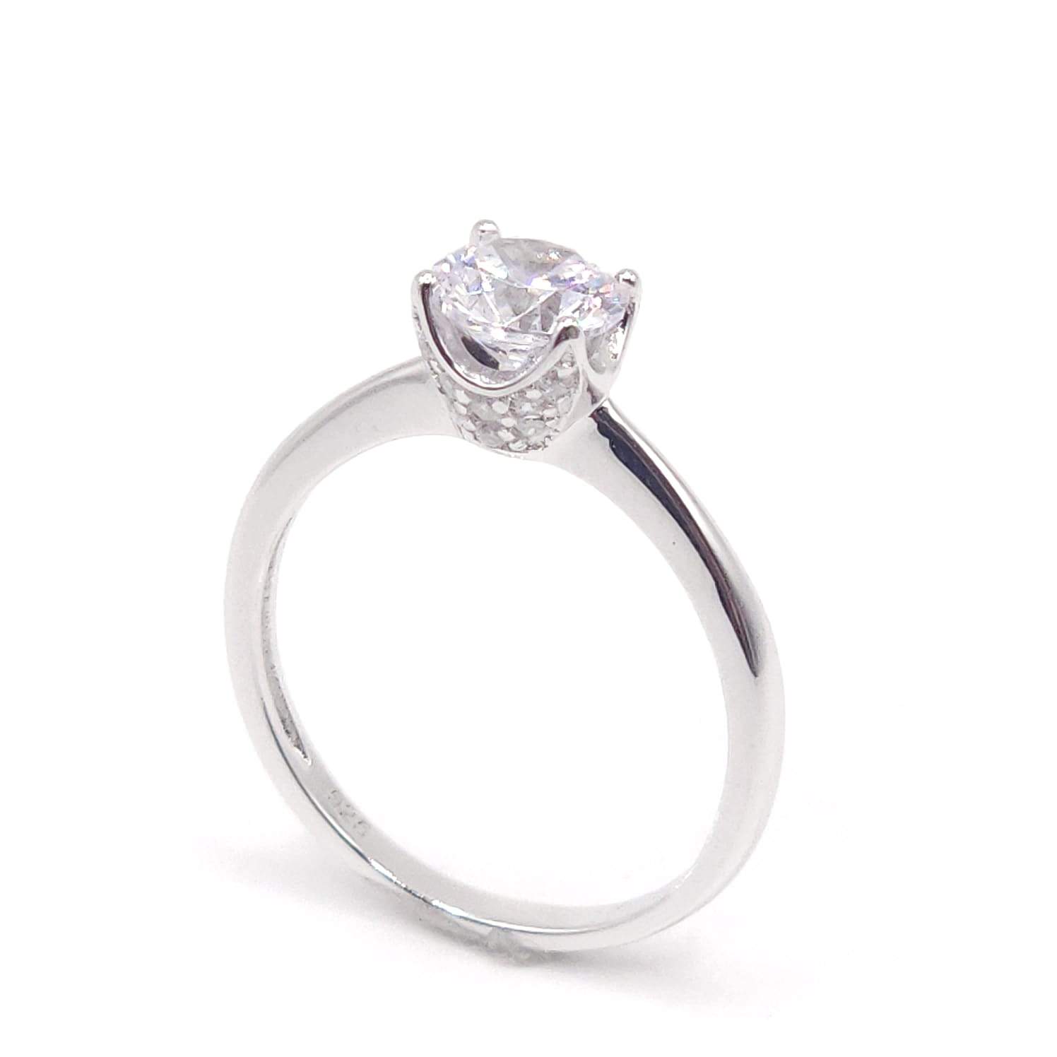 ANILLO CIRCONIA BLANCA 5 MM 4 PINES CON MONTURA EN FORMA DE U CON CIRCONIAS