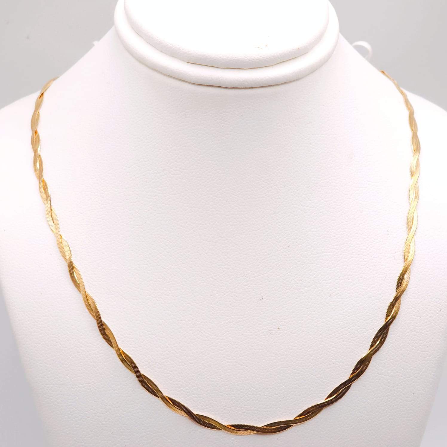 CADENA TIPO PLANCHA TRENZADA EN COLOR DORADO. (MIDE 44CM)
