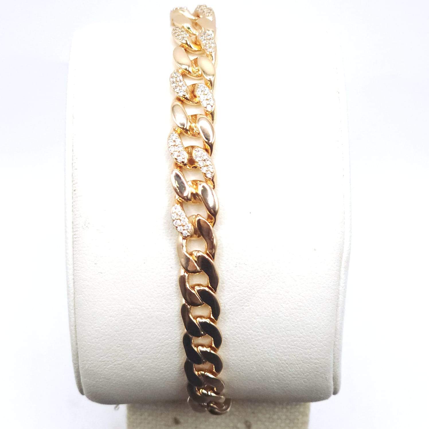 PULSERA CUBANA CON CIRCONIAS BLANCAS FRONTALES iNTERCALADAS .(19CM)