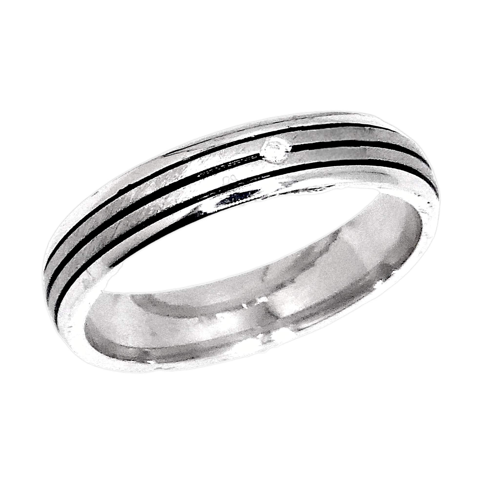 ARGOLLA DE DAMA CONFORT DISEÑO SATINADO MATE CON 3 LINEAS NEGRAS ALREDEDOR Y UNA CIRCONIA BLANCA FRONTAL DE 5MM GROSOR