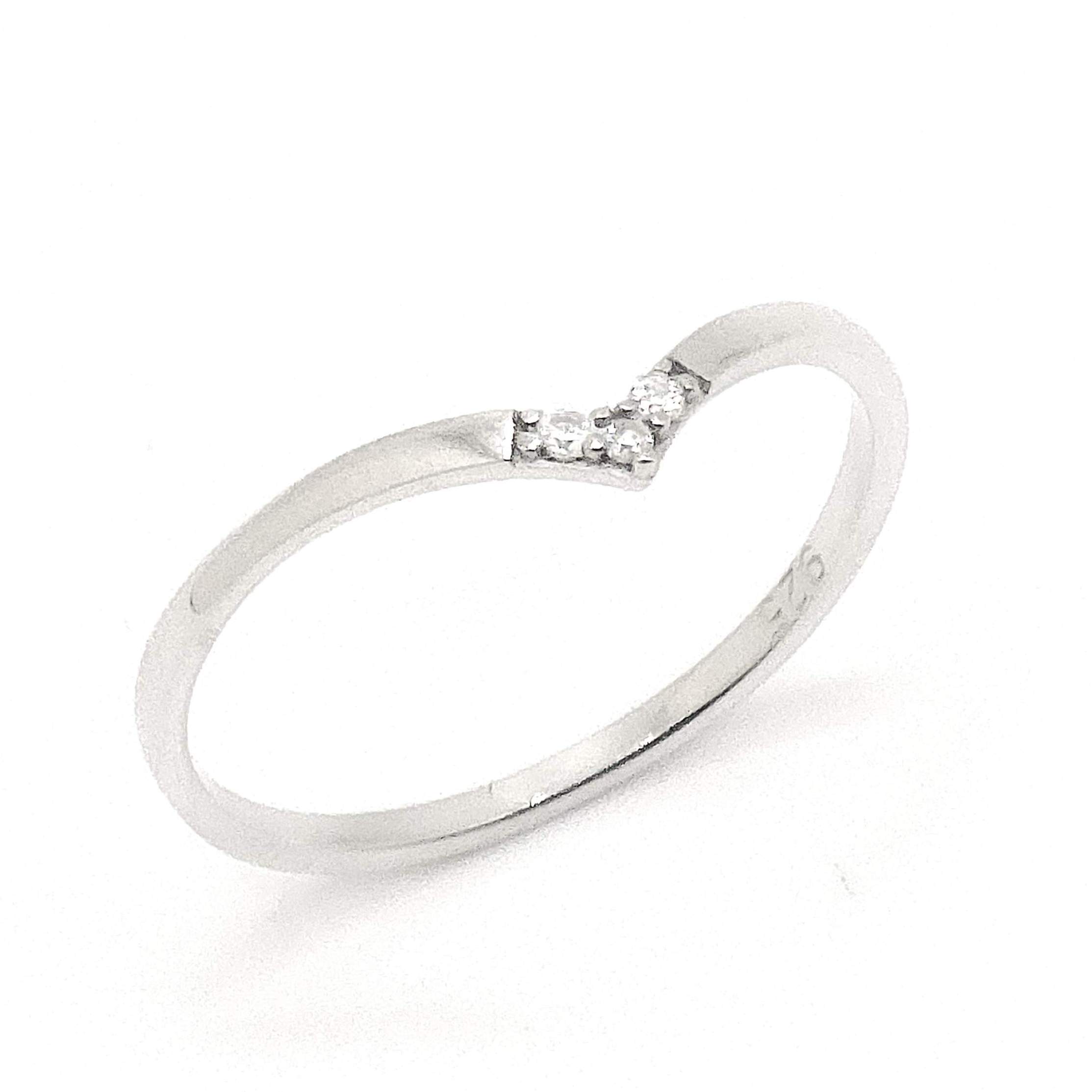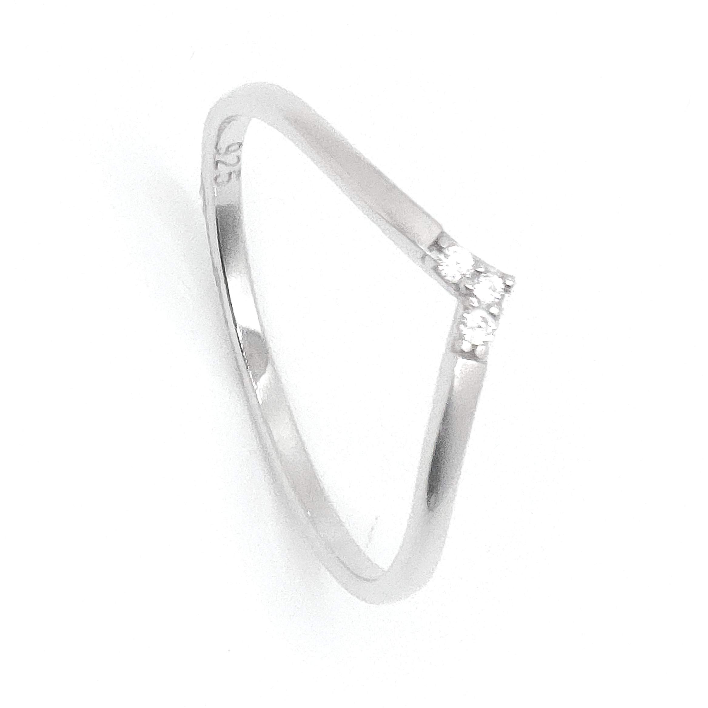 ARGOLLA DAMA LISA DELGADA CON 3 CIRCONIAS FRONTALES EN FORMA DE V
