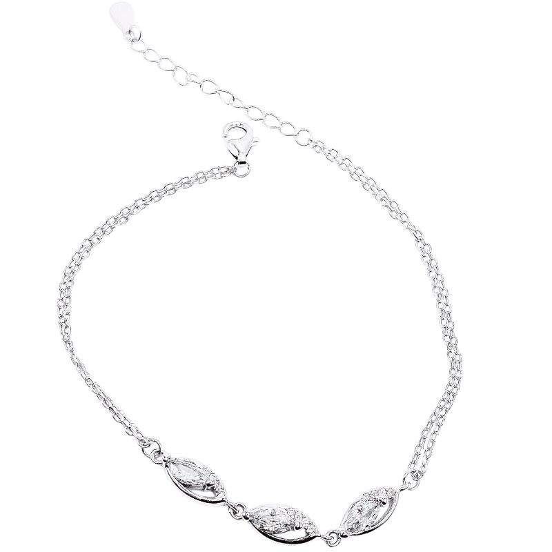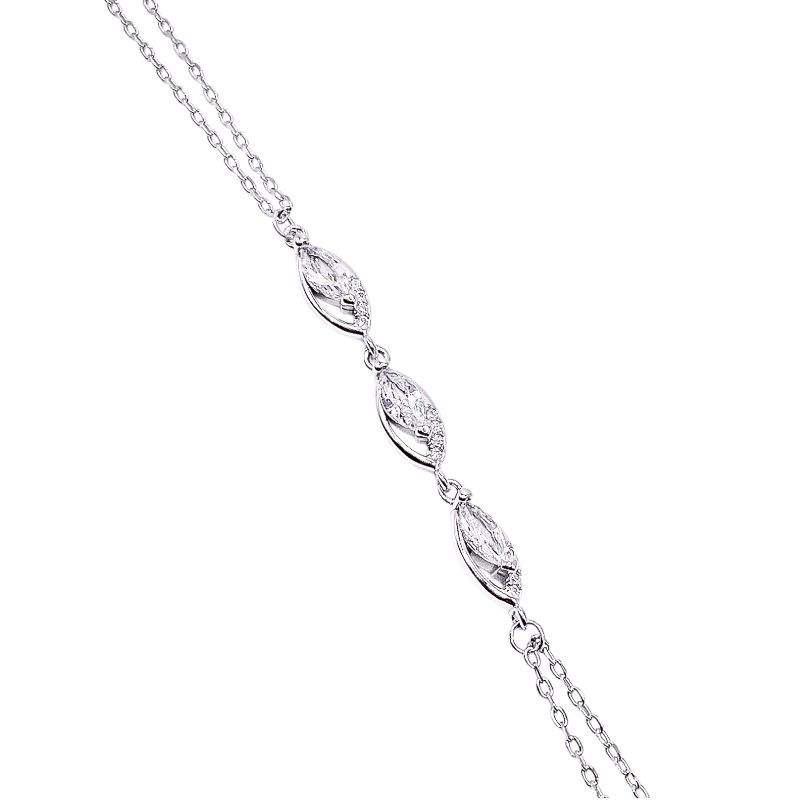 PULSERA CON 3 OVALOS LISOS EN HORIZONTAL CON 3 CIRCONIAS TIPO MARQUESA DE DOBLE CADENA DE AMBOS LADOS.(MIDE 16CM + 3CM DE EXTENSION)