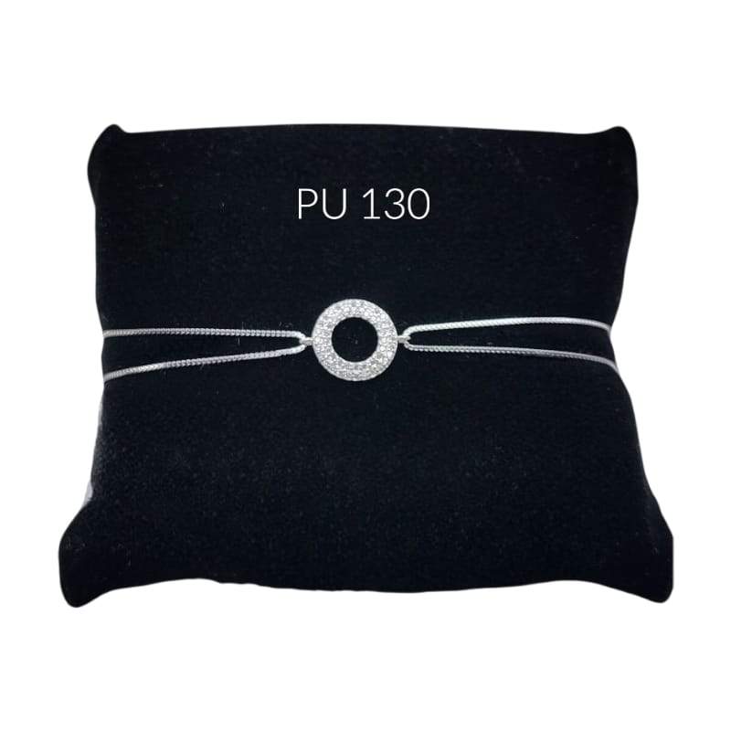 PULSERA DOBLE CADENA DISEÑO BOX CON UN DIJE DE CIRCULO CALADO CON CIRCONIAS BLANCAS.(MIDE 16CM + 3CM DE EXTENSION)