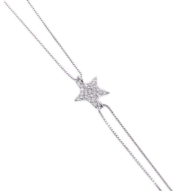 PULSERA DOBLE CADENA DISEÑO BOX CON UN DIJE DE ESTRELLA CON CIRCONIAS BLANCAS.(MIDE 16CM + 3CM DE EXTENSION)
