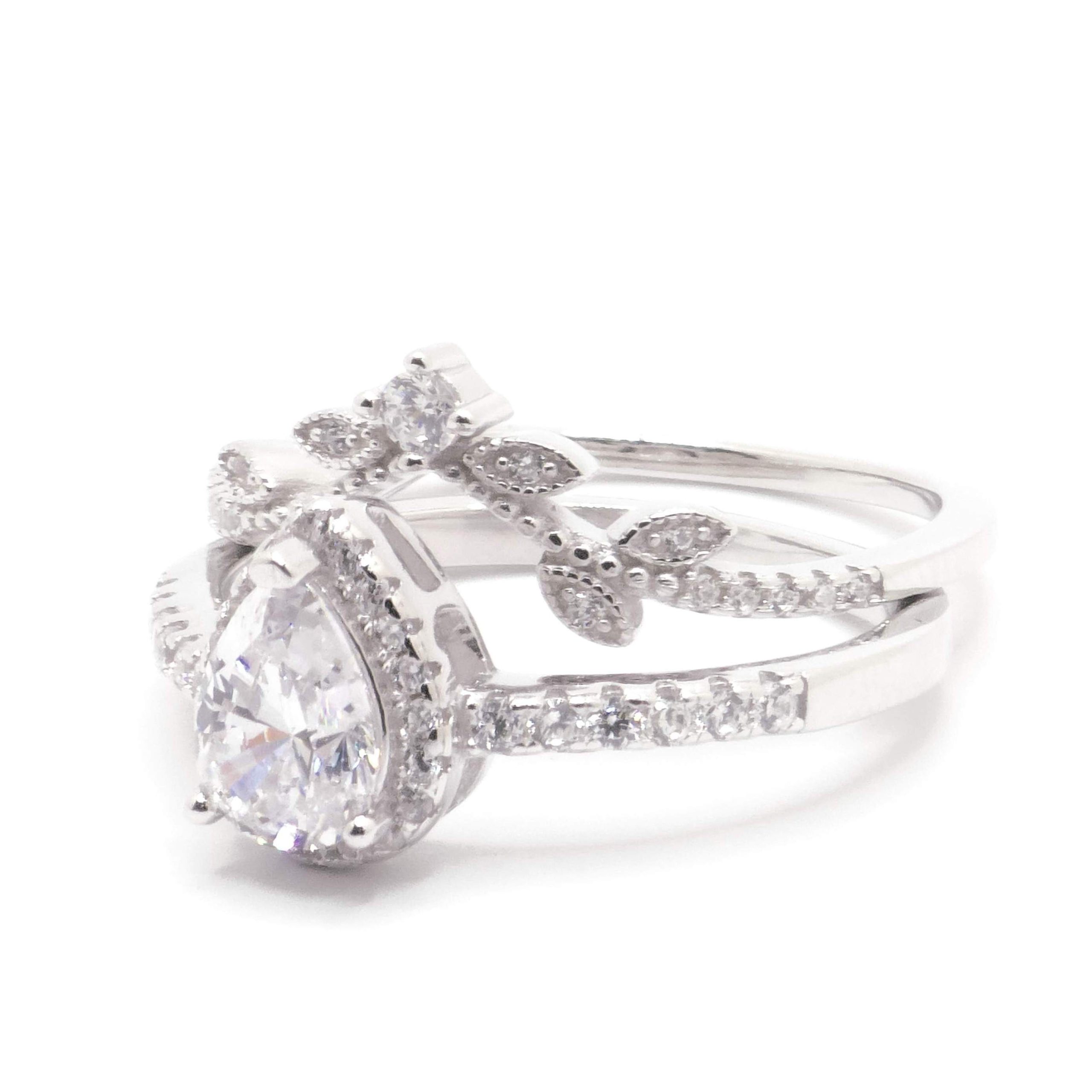 JACKET ANILLO CIRCONIA FORMA DE GOTA CON ARGOLLA CON HOJITAS