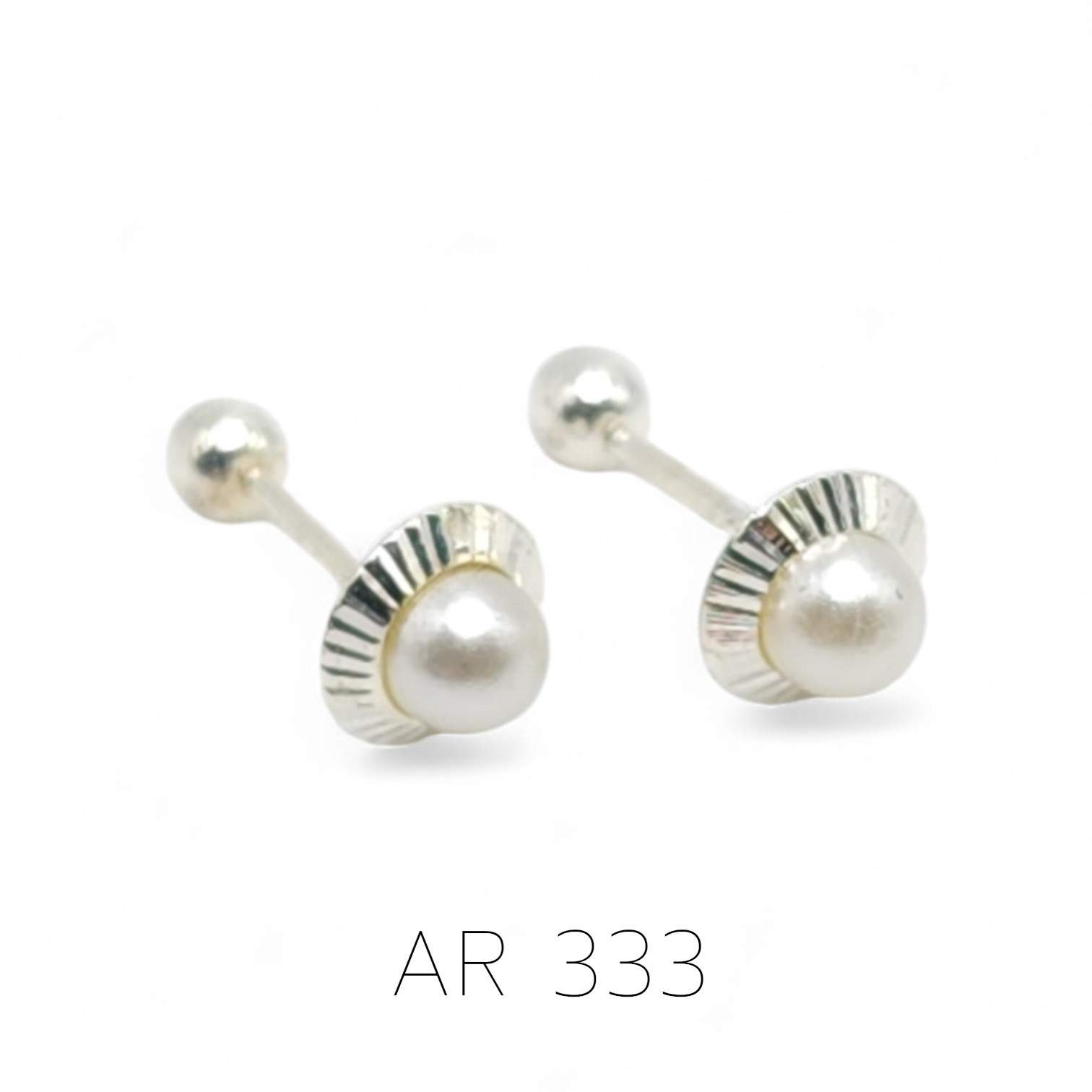 ARETES BROQUEL PERLA CON DISEÑO ESPAÑOL MONTURA CON RAYITAS