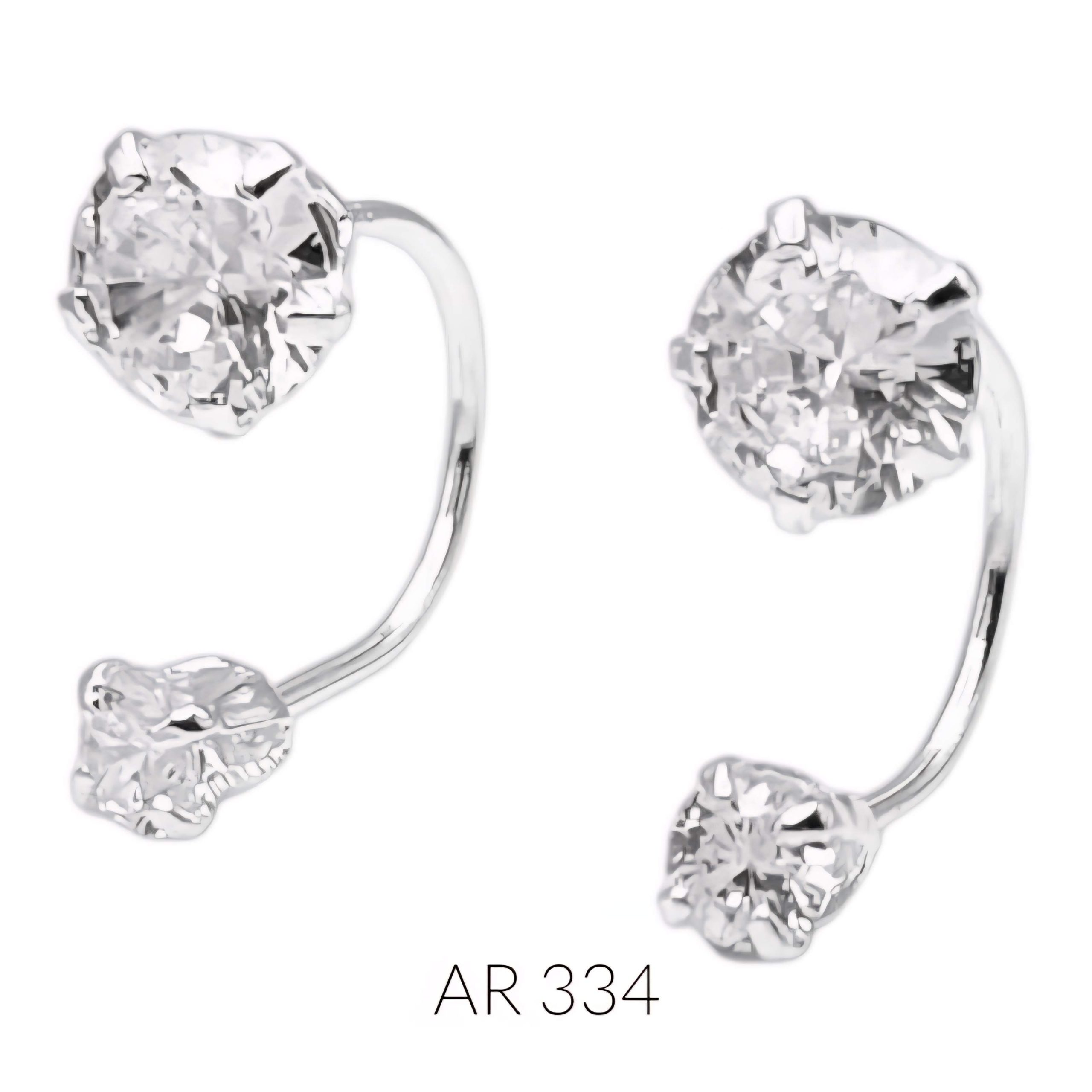 ARETE BROQUEL CURVO CON 2 CIRCONIAS BLANCAS