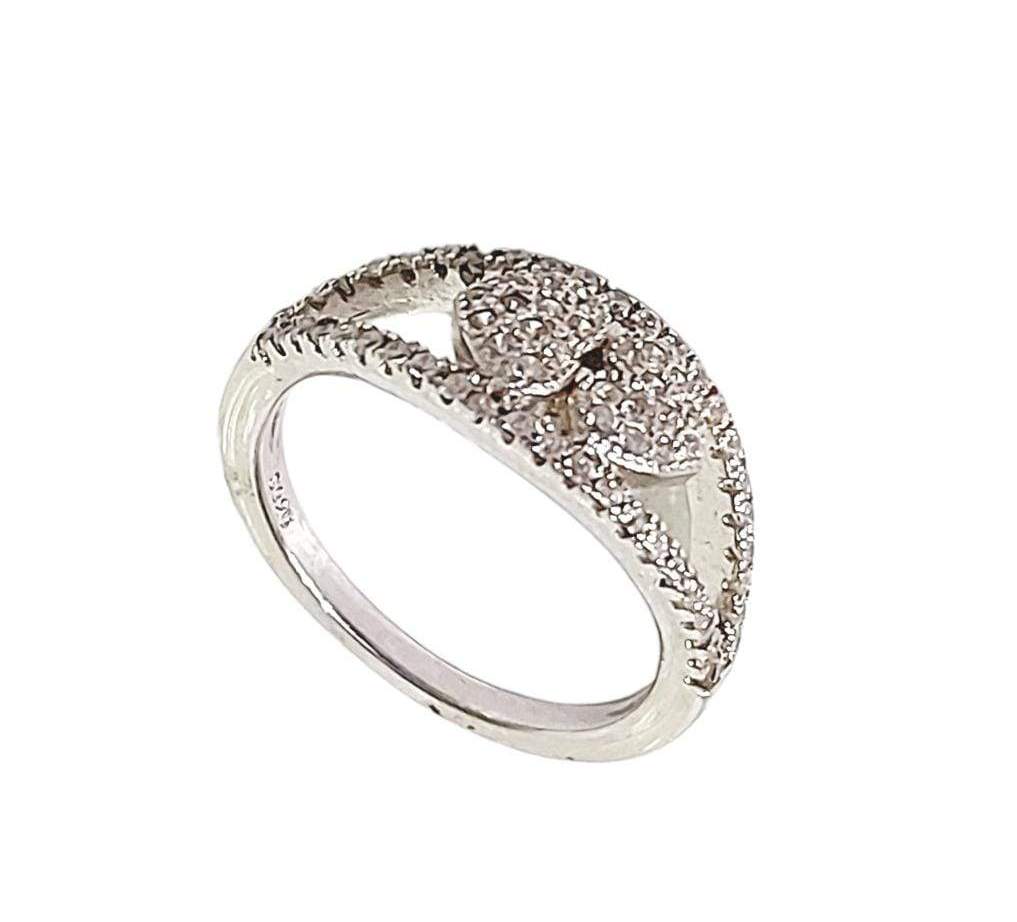 ANILLO CON DOS FILAS A LOS LADOS Y DOS CORAZONES UNIDOS EN EL CENTRO DE MICRO CIRCONIAS