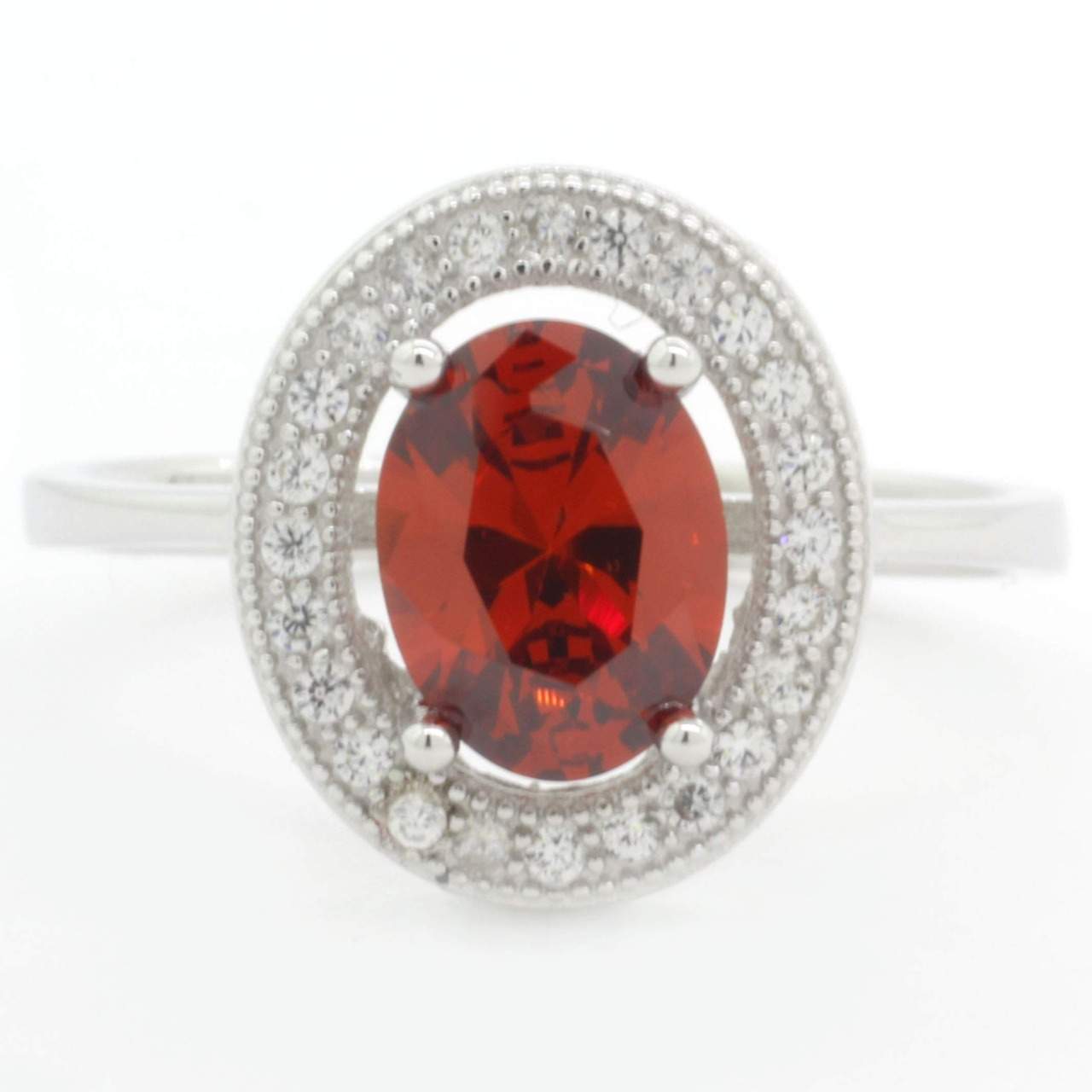 ANILLO CON CRISTAL OVALO ROJO CON CIRCONIAS BLANCAS