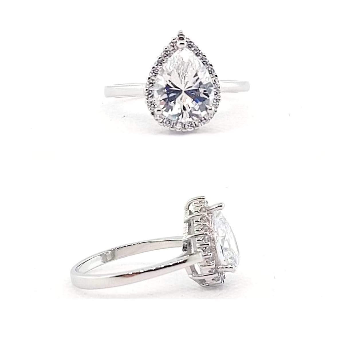 ANILLO GOTA CIRCONIA BLANCA CON CIRCONIAS ALREDEDOR ANILLO LISO