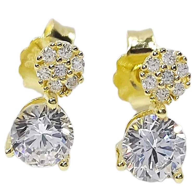 ARETES CIRCONIA REDONDA CON CIRCULO MICRO CIRCONIAS DORADO CON POSTE