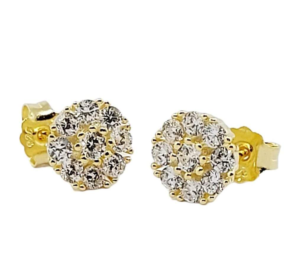 ARETES FLOR DE CIRCONIAS CON CIRCONIA COLOR DORADO CON POSTE