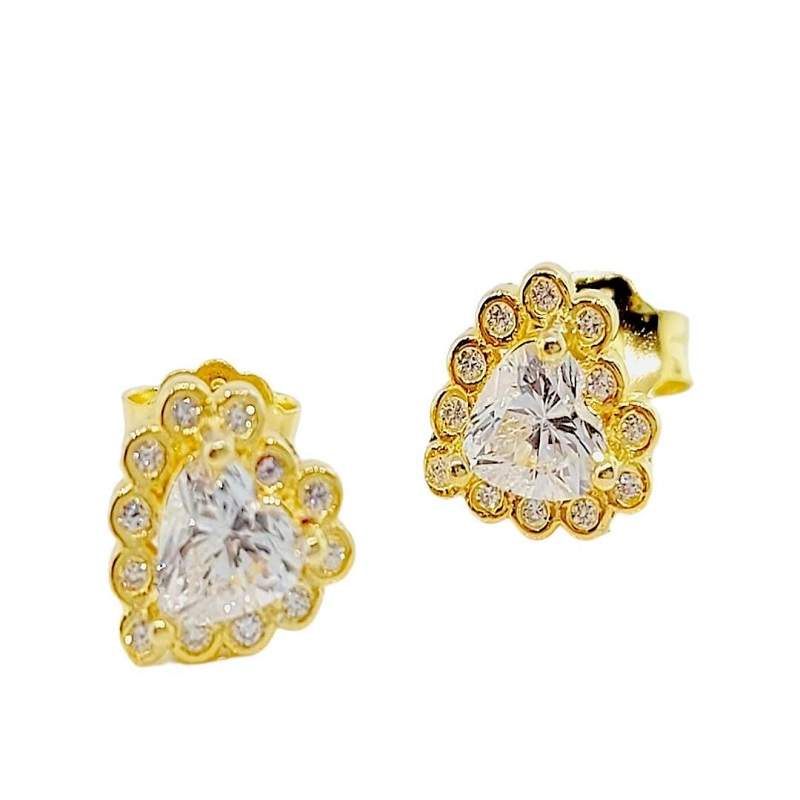 ARETES CORAZON CON CIRCONIA EN EL CENTRO COLOR DORADO