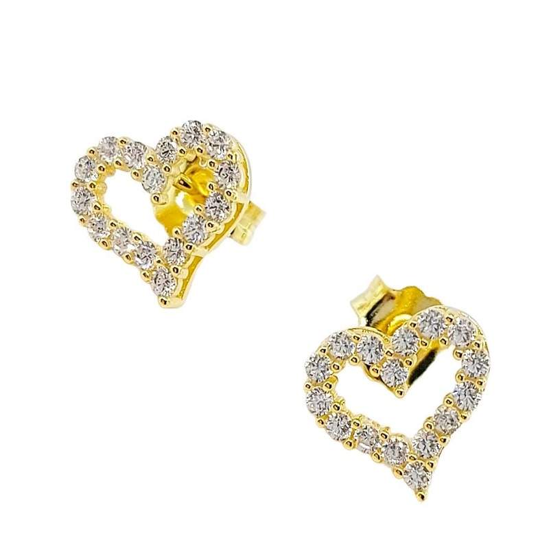 ARETES CORAZON SILUETA CON CIRCONIAS COLOR DORADO