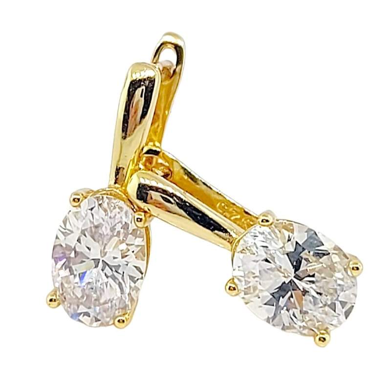 ARETE LISO CON GANCHO INGLES CIRCONIA OVALADA DORADO