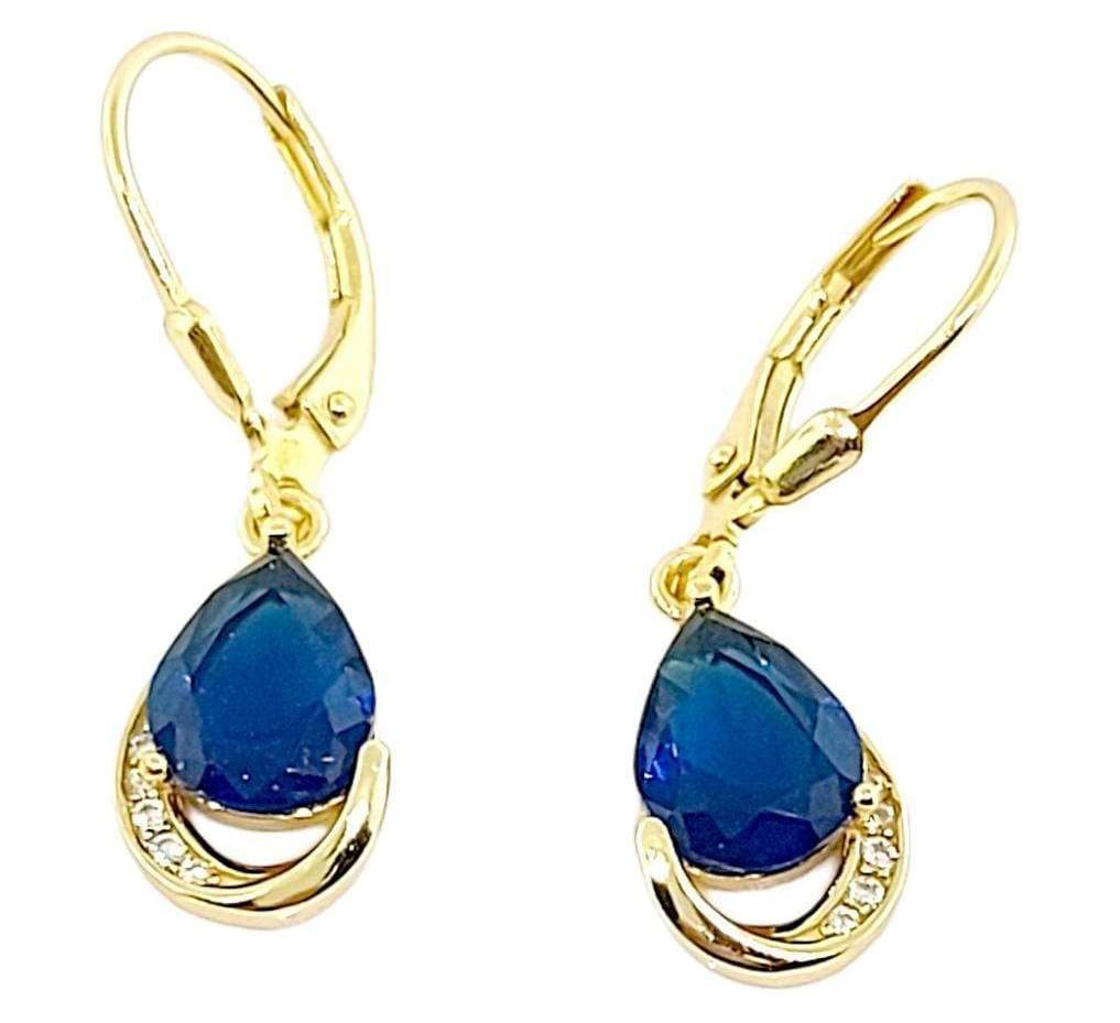 ARETE LARGO GANCHO DE PATENTE CON CIRCONIA COLOR AZUL DE GOTA Y MICROCIRCONIAS A UN LADO COLOR DORADO